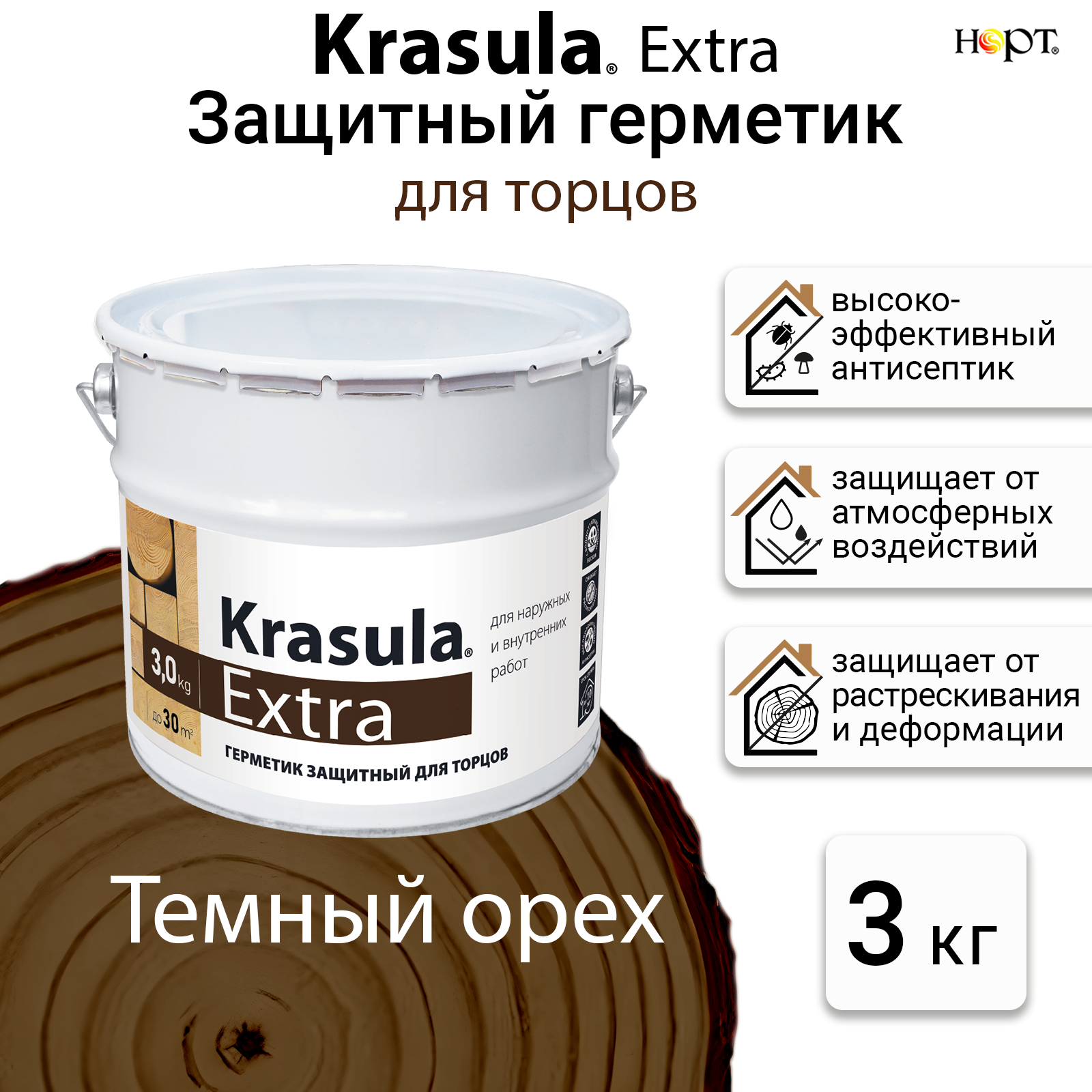 Купить Krasula Extra 3кг, Герметик защитный для торцов, пропитка для торцов, Темный орех с доставкой по всей России.