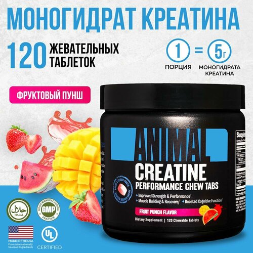 Креатин моногидрат Animal Creatin, спортивное питание, жевательные таблетки со вкусом Фруктовый пунш, 120 шт, 30 порций: сравнение цен, характеристики, фото, актуальное наличие и цены.
