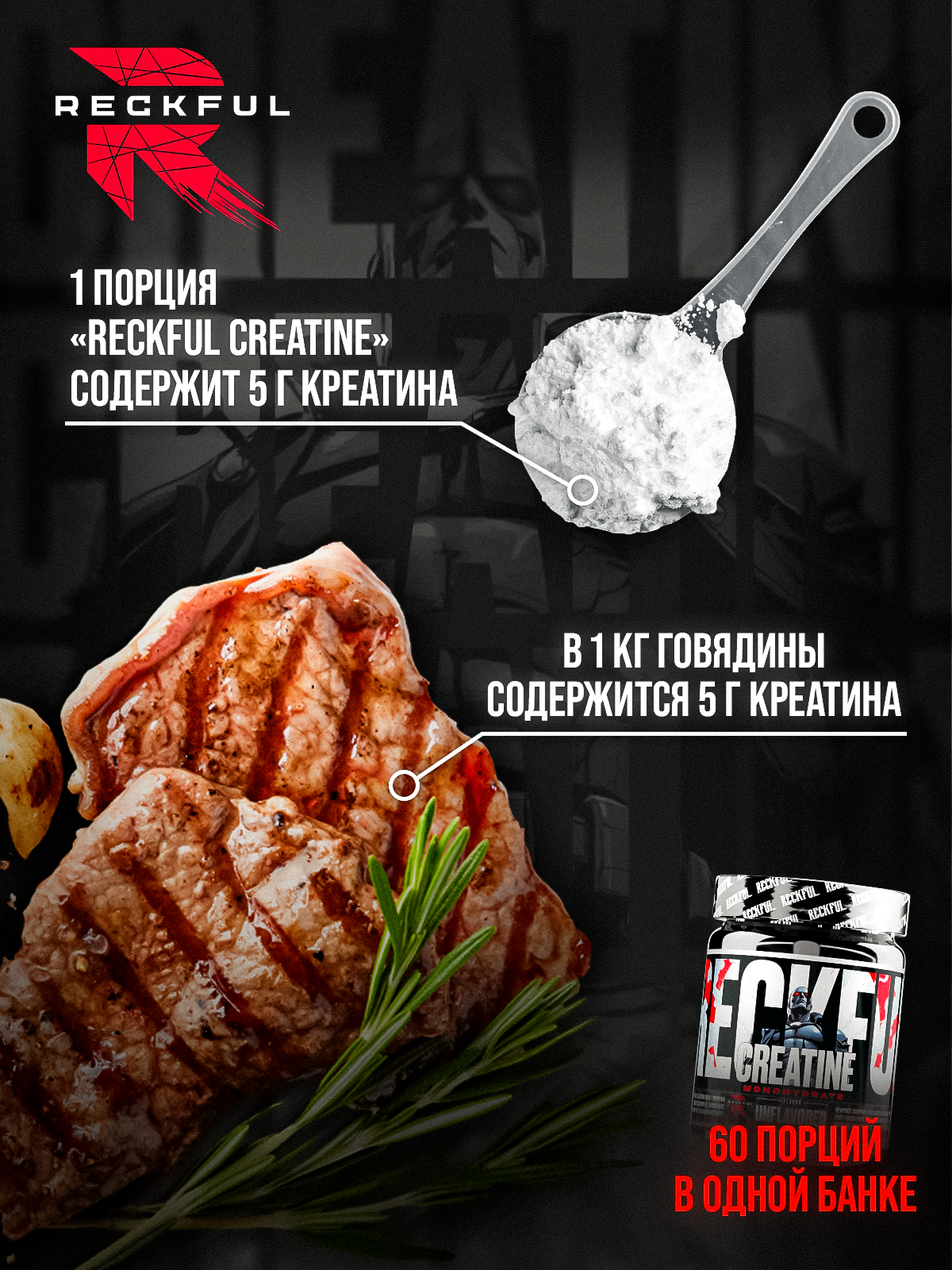 Купить Креатин моногидрат порошок Reckful Creatine Monohydrate Powder без вкуса 300гр с доставкой по всей России.