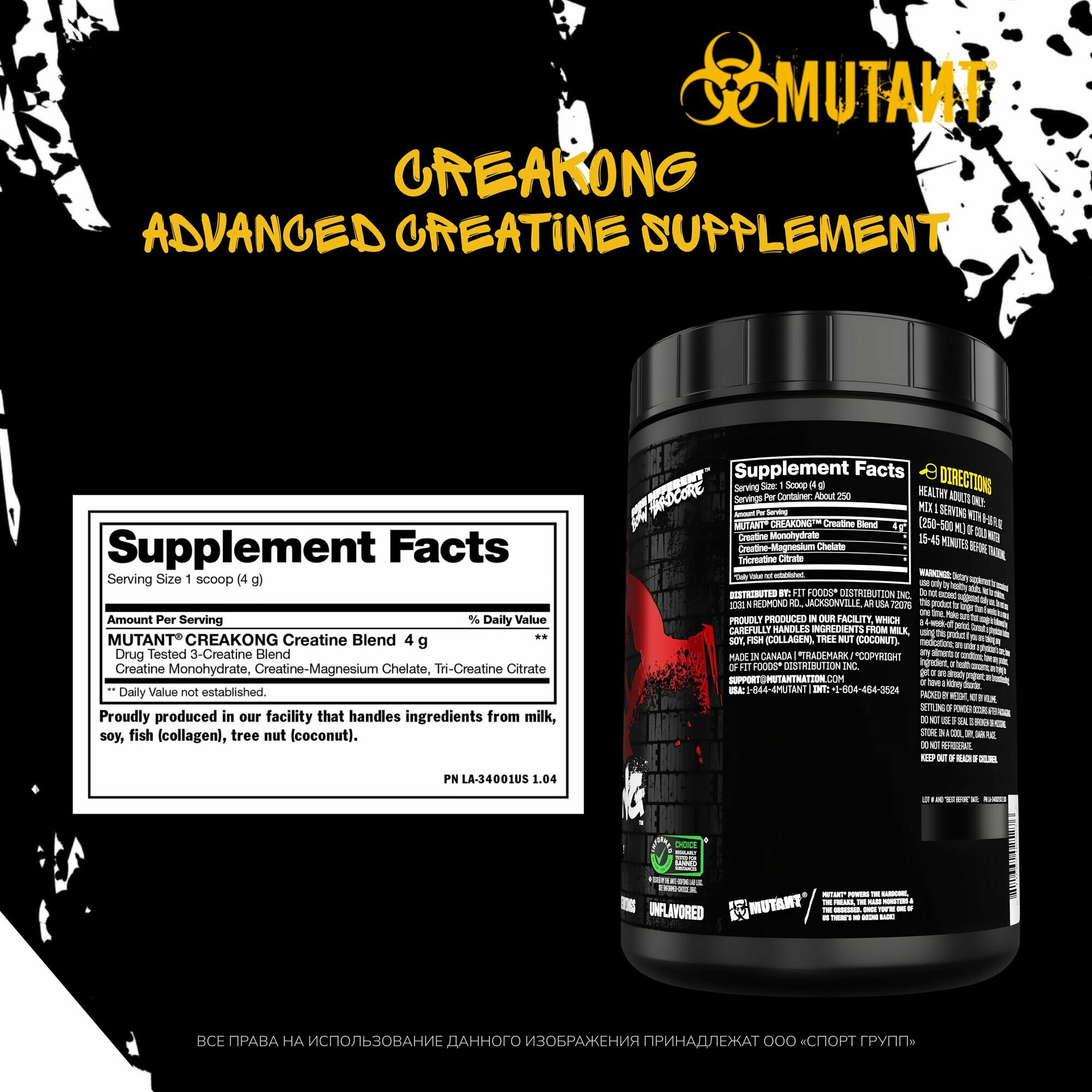 Mutant Creakong – это креатиновый комлпекс, который содержит три высоэффективные формы креатина.
