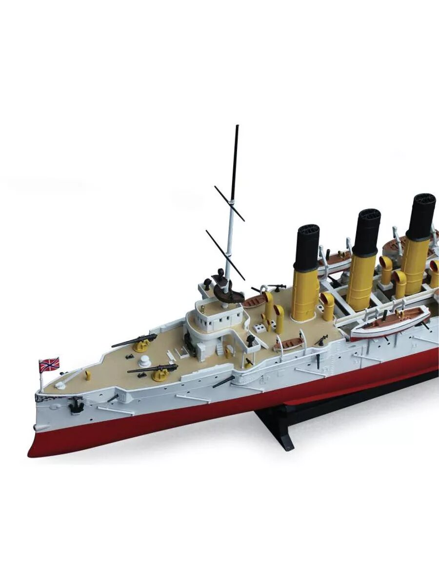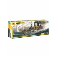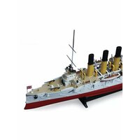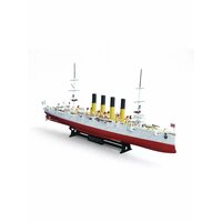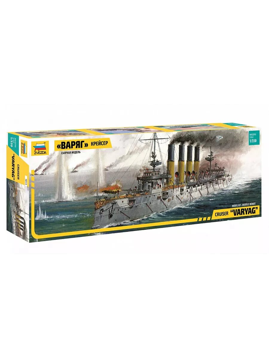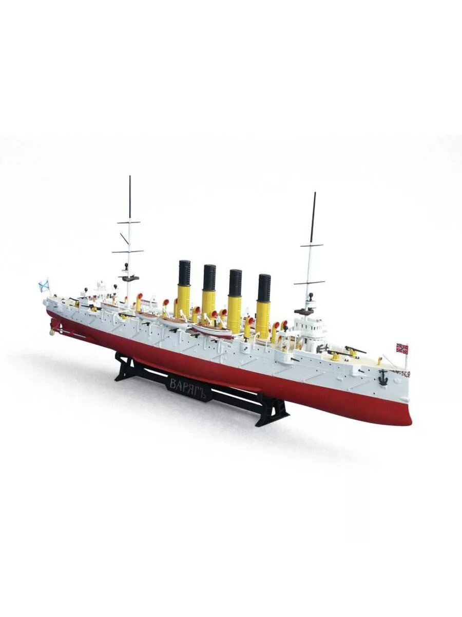 Сборная модель - Крейсер «Варяг». Набор деталей из пластмассы для сборки одной модели корабля. Крейсер построен в 1899 г. в США для России. Водоизмещение 6 500 т, скорость 23 узла, вооружение 12x152 мм орудий, размещенных на палубе, без щитов. Вступил в состав флота в 1901 г. 9 февраля 1904 г. после неравного боя на рейде Чемульпо с превосходящими силами японской эскадры был затоплен экипажем не спуская Андреевского флага.