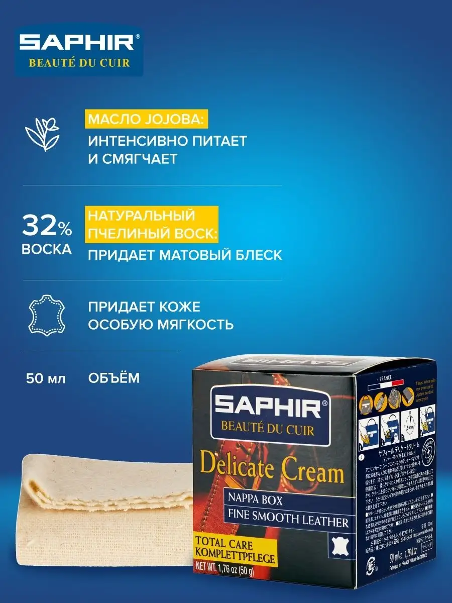 Крем-бальзам для изделий из деликатной кожи SAPHIR DELICATE cream, бесцветный (neutral) в стеклянной банке, 50 мл: сравнение цен, характеристики, фото, актуальное наличие и цены.