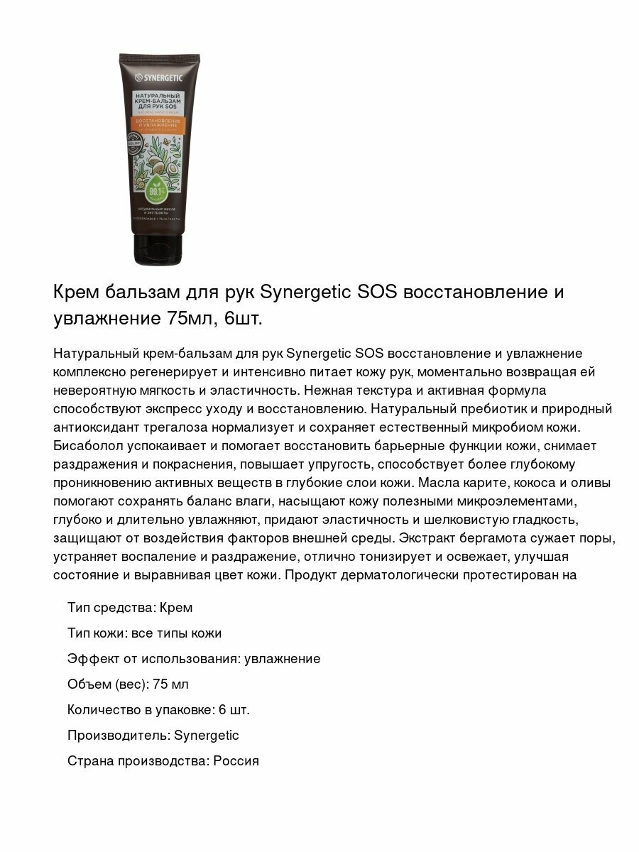 Крем бальзам для рук Synergetic SOS восстановление и увлажнение 75мл, 6шт.: сравнение цен, характеристики, фото, актуальное наличие и цены.