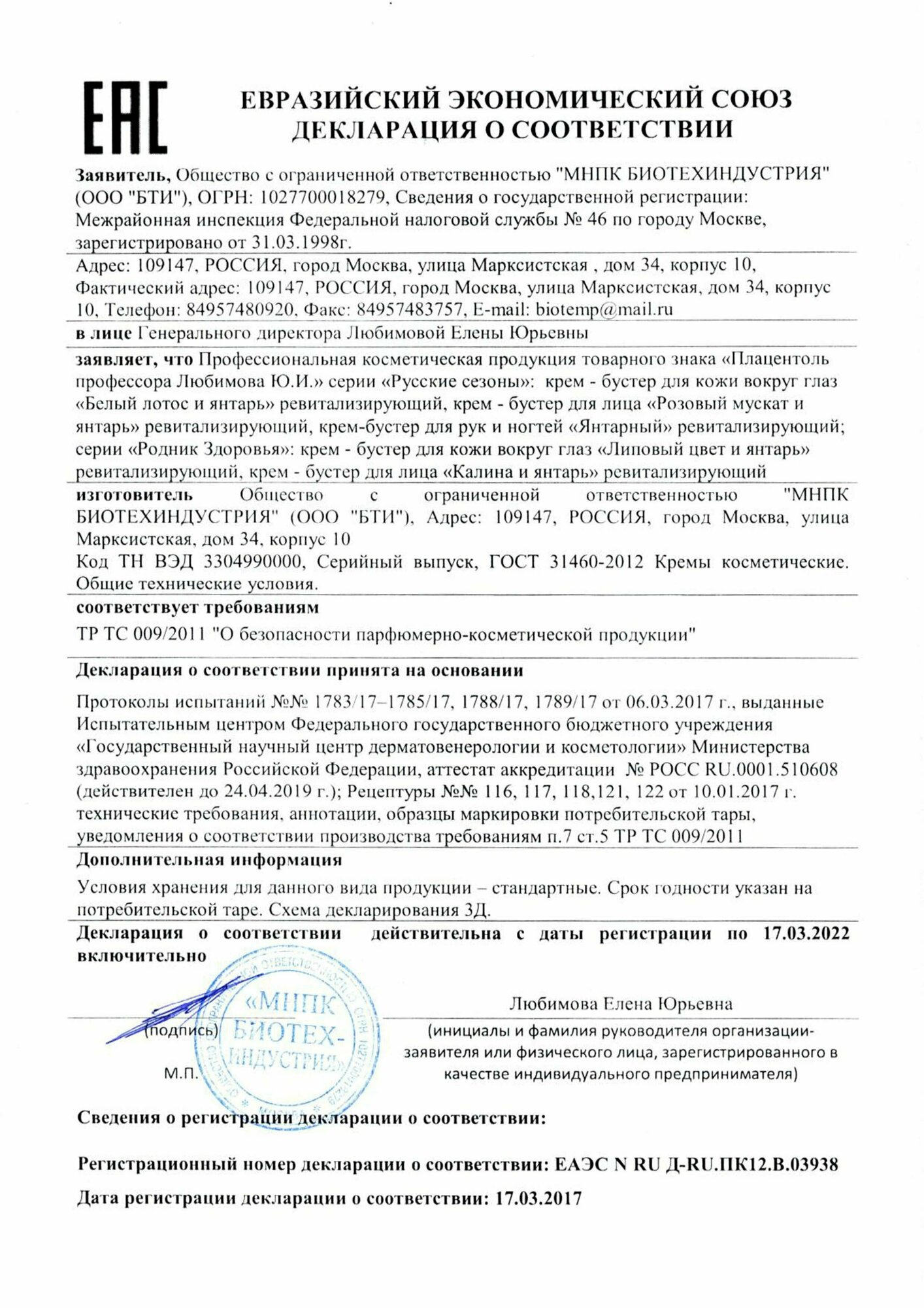 пептидный комплекс «Плацентоль 100%»®, масло амарантовое, Calmosensine®, витамин Е, витамин А, пантенол, масло виноградной косточки, масло тыквенное, экстракт липового цвета, хмеля, петрушки, солодки, гиалуроновая кислота, янтарная кислота, янтарная пудра.