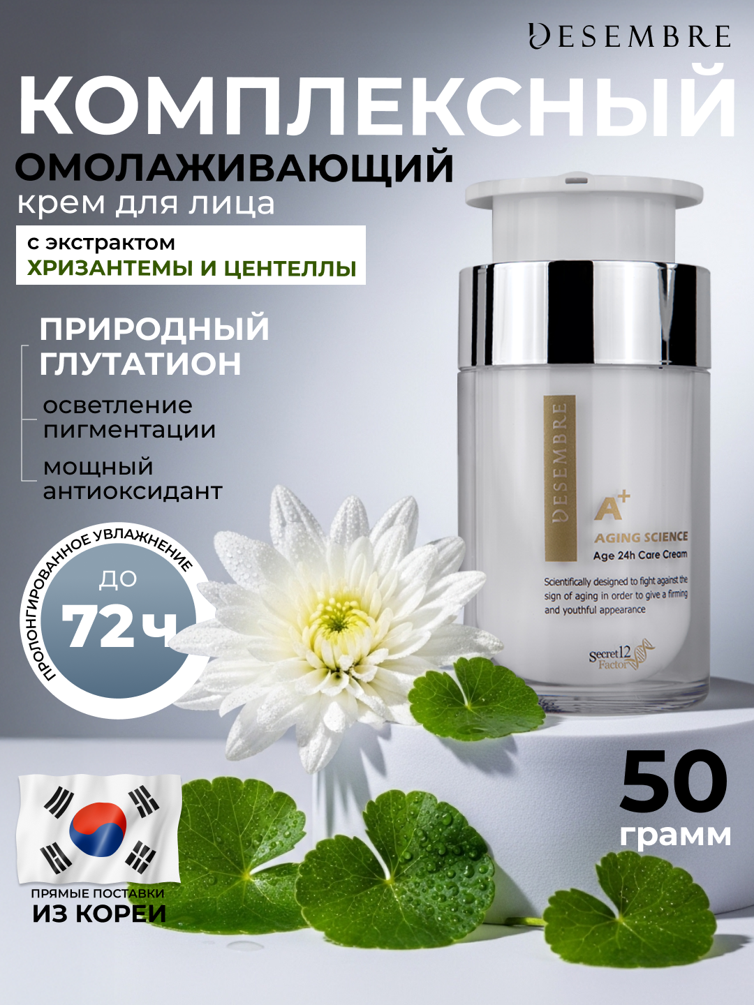 Крем для лица антивозрастной Desembre лифтинг крем для лица с гиалуроновой кислотой, Корея, 50 г