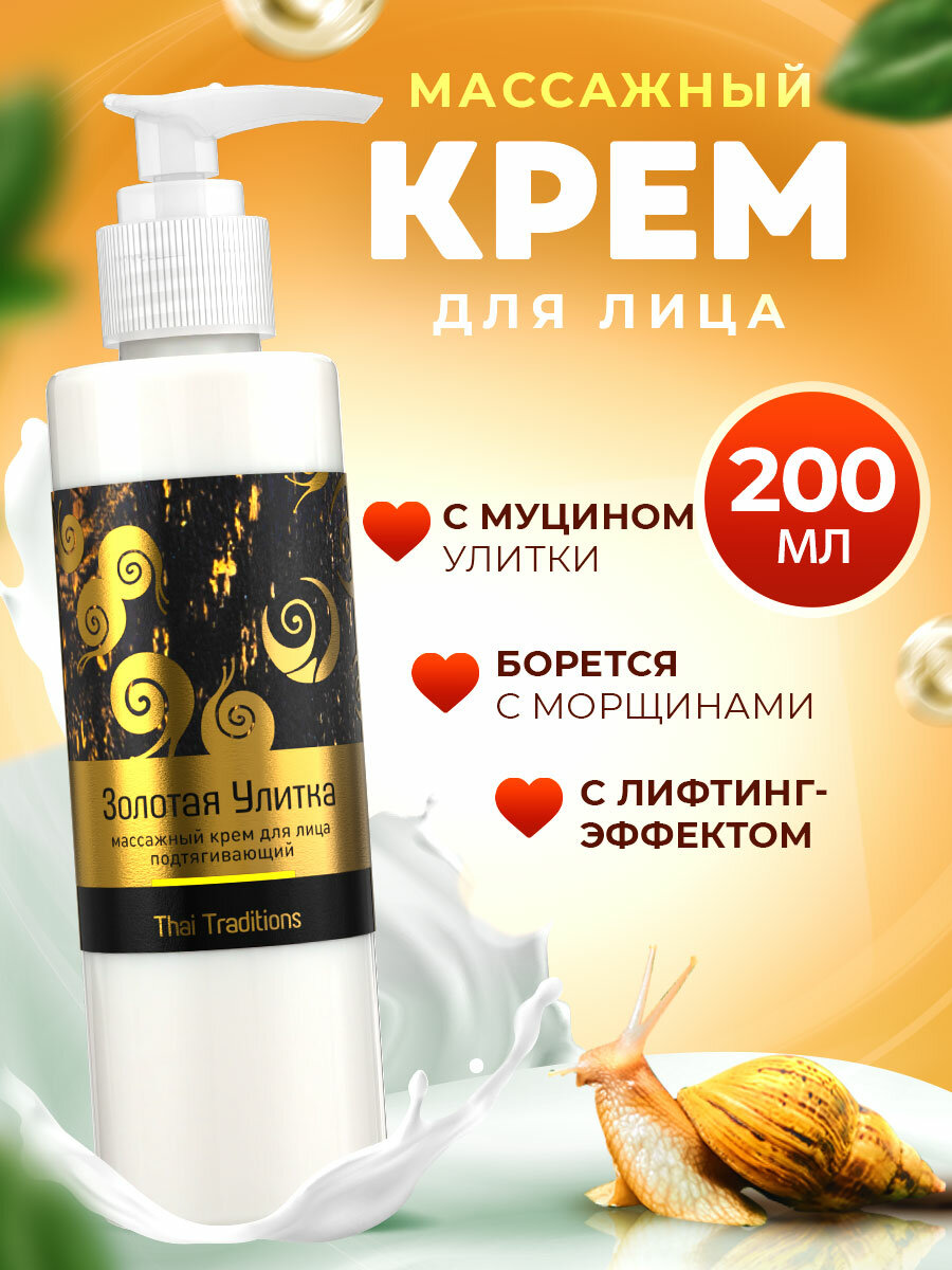 Крем для лица массажный антивозрастной для массажа от морщин увлажняющий питательный с лифтинг эффектом Thai Traditions Золотая Улитка, 200 мл.: сравнение цен, характеристики, фото, актуальное наличие и цены.