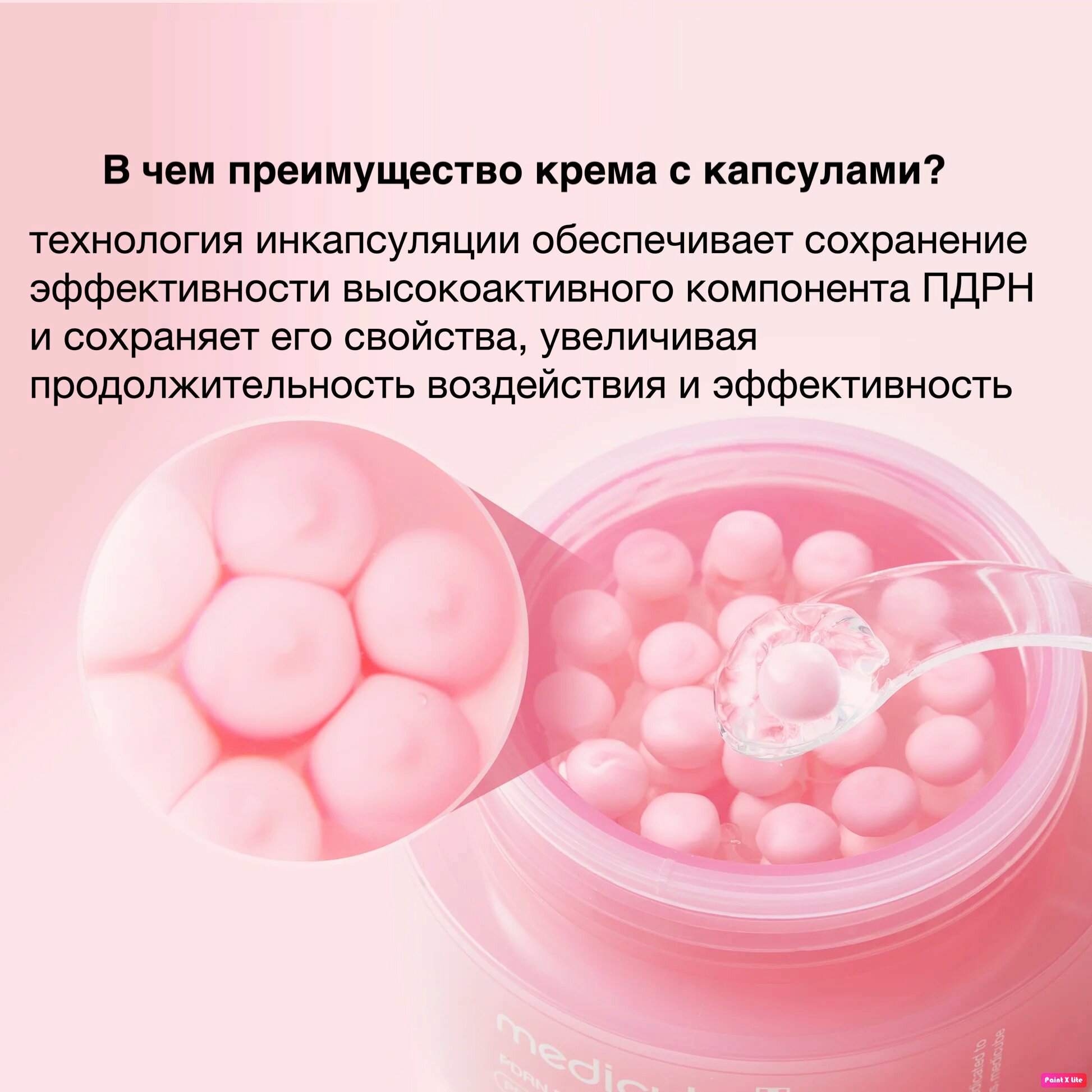 Medicube PDRN Pink Collagen Capsule Cream высокотехнологичный продукт с уникальной системой доставки активных веществ, обеспечивает не только интенсивное увлажнение, но и способствует омоложению кожи. С помощью капсул, активируемых в процессе использования, продукт эффективно работает на выравнивание тона, улучшение упругости и восстановление естественного сияния кожи. Помогает вернуть коже сияние, улучшает её упругость и тон, увлажняет, стимулирует регенерацию, улучшение текстуры и осветление кожи; действует как защитный барьер, удерживающий влагу внутри кожи, создавая длительный эффект сияния и предотвращая потерю гидратации в течение дня.
