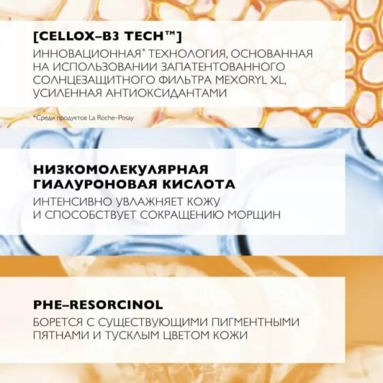 | Дополнительная информация | Наносить каждое утро после очищения, тонизации и основного ухода на лицо, шею и зону декольте. Прекрасно подходит в качестве основы под макияж. Наносить средство непосредственно перед выходом на солнце. Обильно и часто повторяйте нанесение средства, особенно после купания или вытирания. В случае попадания средства в глаза тщательно промойте их водой. Избегайте контакта с одеждой до полного впитывания. Чрезмерное пребывание на солнце опасно. Не рекомендуется находиться на солнце слишком долго даже при нанесенном солнцезащитном средстве, т.к. солнцезащитное средство никогда не обеспечивает абсолютную защиту. Не подвергайте прямому солнечному воздействию детей грудного и младшего возраста. |