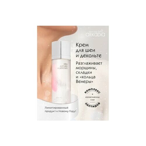 Омолаживающий крем на основе комплекса пептидов и факторов роста, усиленных изофлавонами сои для поддержания здоровья, красоты и молодости нежной кожи шеи и зоны декольте. Крем с уникальным ароматом ARKADIA, созданным нашими разработчиками. Аромат лимитированной новогодней серии о женственности, утонченности и энергии, которая делает каждую из нас прекрасной. Крем для шеи и декольте с мягкой текстурой, быстро впитывается, не оставляет ощущения липкости и пленки. Подобно хайлайтеру делает кожу гладкой и сияющей.