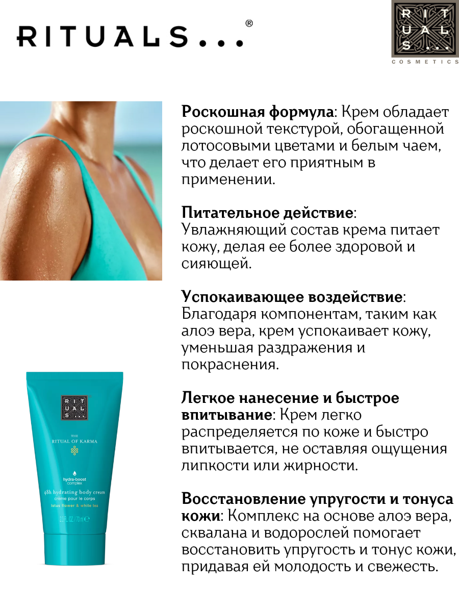 Крем для тела RITUALS «Karma» с сладким цветочным ароматом священного лотоса и белого чая, 70мл: сравнение цен, характеристики, фото, актуальное наличие и цены.