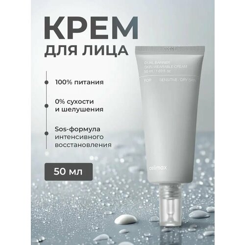 Крем Celimax Dual Barrier Skin Wearable Cream увлажняет и восстанавливает тонкую чувствительную кожу, успокаивает, смягчает, избавляет от сухости и шелушения, улучшает состояние пор и устраняет чувство стянутости после умывания.