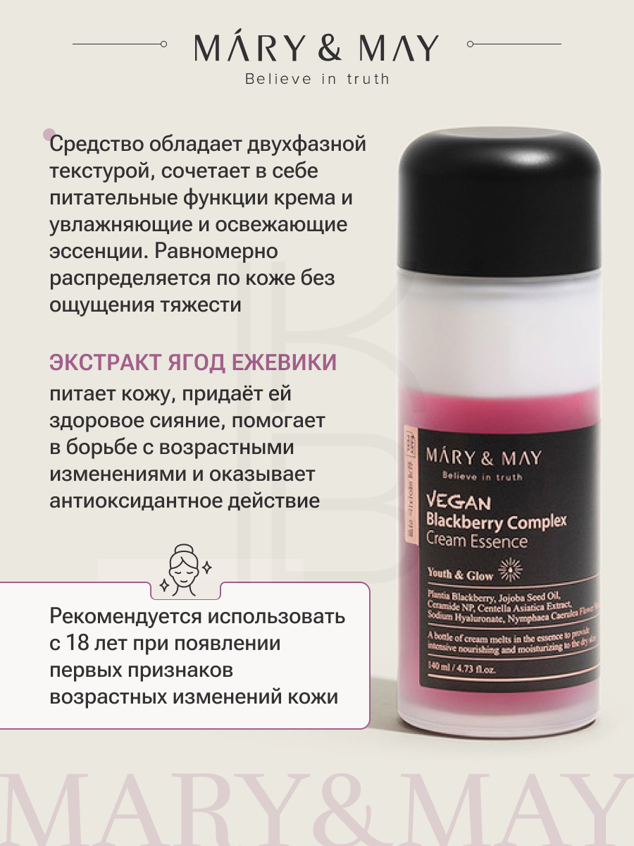 Крем-эссенция с ежевичным комплексом | Mary&May Vegan Blackberry Complex Cream Essence 140ml: сравнение цен, характеристики, фото, актуальное наличие и цены.