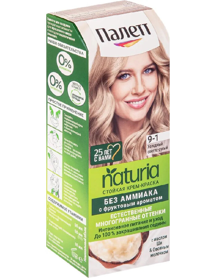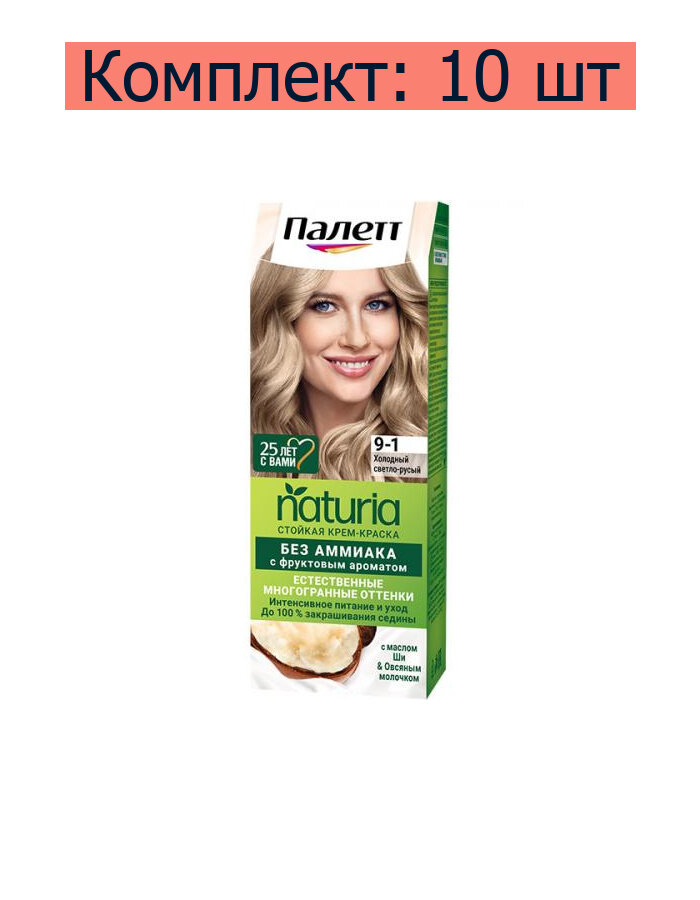 Крем-краска стойкая Палетт Naturia без аммиака для волос, 9-1 Холодный светло-русый, 110 мл, 10 шт: сравнение цен, характеристики, фото, актуальное наличие и цены.