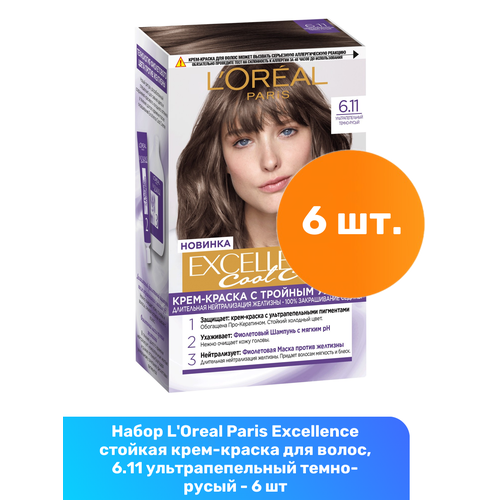 Купить Крем краска для волос стойкая L’Oreal Paris Excellence Purple, 6.11, Ультрапепельный, Темно-Русый, 258мл, 6 шт с доставкой по всей России.