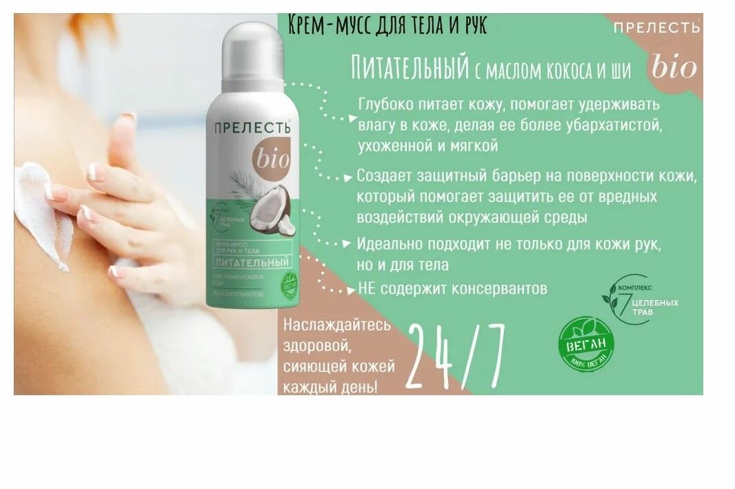 Купить Крем-мусс для тела Прелесть «Био» питательный, 100 мл с доставкой по всей России. Крем-мусс для тела Прелесть «Био» питательный, 100 мл: сравнение цен, характеристики, фото, актуальное наличие и цены.