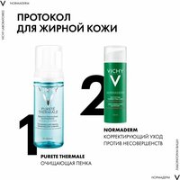 8 из 10 женщин сталкиваются с проблемой акне даже после подросткового возраста. Воспаления имеют другой механизм возникновения: они четко зависимы от менструального цикла и стрессов, особенно хронических, становятся более устойчивыми и сложнее поддаются коррекции. Лаборатории VICHY впервые объединили 4 активных дерматологических компонента для увлажнения и восстановления кожи с несовершенствами в новом уходе NORMADERM Подходит в качестве основы под макияж. Без парабенов Ингредиенты • салициловая к-та (1,5%) и LHA борются с несовершенствами независимо от их причины, обновляют кожу; • PhE-Resorcinol устраняет следы несовершенств кожи, стимулирует регенерацию клеток; • AirLicium предотвращает появление жирного блеска в течение всего дня. Эффективность Эффективность клинически доказана даже в периоды гормональных пиков: день за днем поры заметно сужены, кожа очищена от несовершенств, она обретает здоровое сияние. Виши Нормадерм Корректирующий уход против несовершенств, 24 часа увлажнения (VICHY Normaderm Soin Correcteur Anti-Imperfections Hydratation 24 h) - для жирной, комбинированной, проблемной, чувствительной кожи. Возраст c 20 лет - густая эмульсия, легкая, нежирная текстура дарит ощущение комфорта, запах свежести Линия Normaderm корректирующий уход для жирной, проблемной кожи с локальными воспалениями, тусклым цветом лица и расширенными порами
