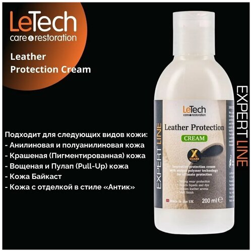 Защитный крем для кожи (Leather Protection Cream) образует на поверхности кожи защитный слой, который обеспечивает защиту от масляных и водных загрязнений, предотвращая появление вышеуказанных проблем.