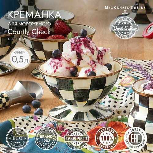 Креманка для мороженого Courtly Check от MacKenzie-Childs предназначена для подачи сладких десертов. Она изготовлена из эмалированной стали, раскрашенная вручную нашим самым популярным рисунком Courtly Check, с тонкой палитрой нескольких оттенков, смешанных кистью мастера в контрастные штрихи. Идеальна для вечеринки, по случаю дня рождения, и столь же великолепна для любителей мороженого.