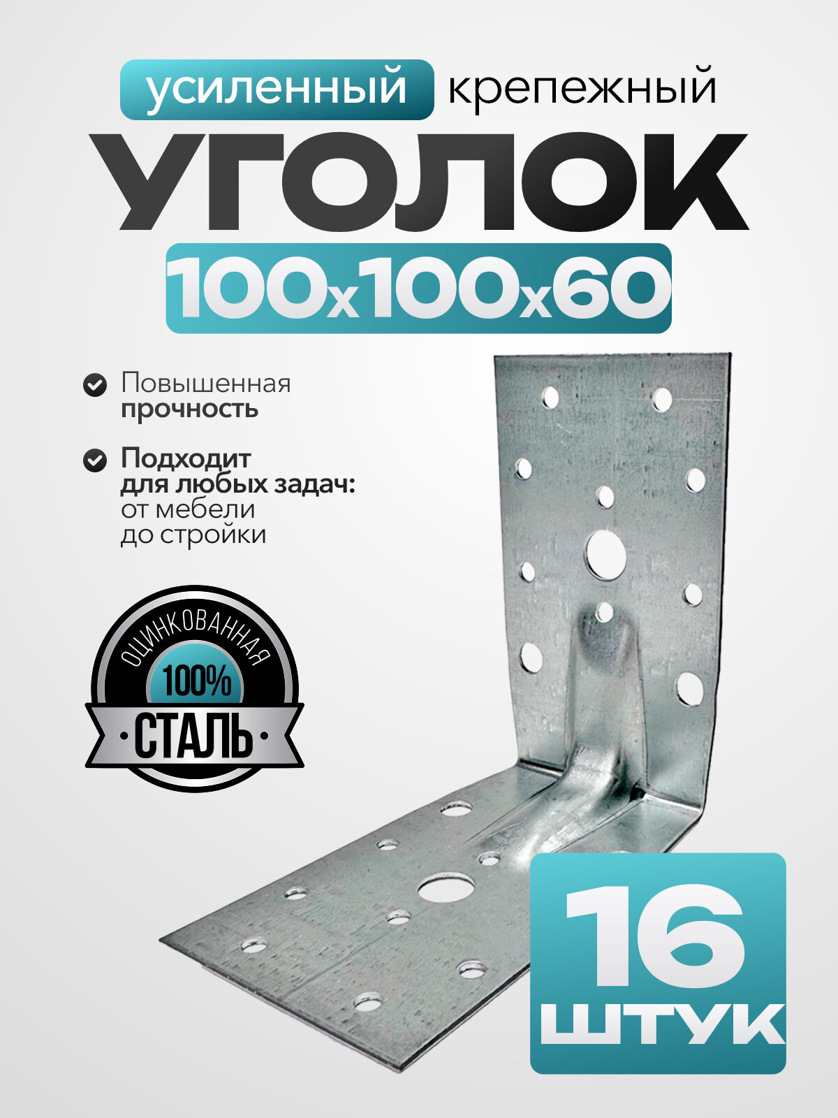 Купить Крепежный уголок усиленный, оцинкованная сталь 100х60 мм (16 шт.) с доставкой по всей России. Крепежный уголок усиленный, оцинкованная сталь 100х60 мм (16 шт.): сравнение цен, характеристики, фото, актуальное наличие и цены.