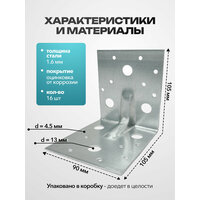 Купить Крепежный уголок усиленный, оцинкованная сталь 105х90 мм (16 шт.) с доставкой по всей России. Крепежный уголок усиленный, оцинкованная сталь 105х90 мм (16 шт.): сравнение цен, характеристики, фото, актуальное наличие и цены.