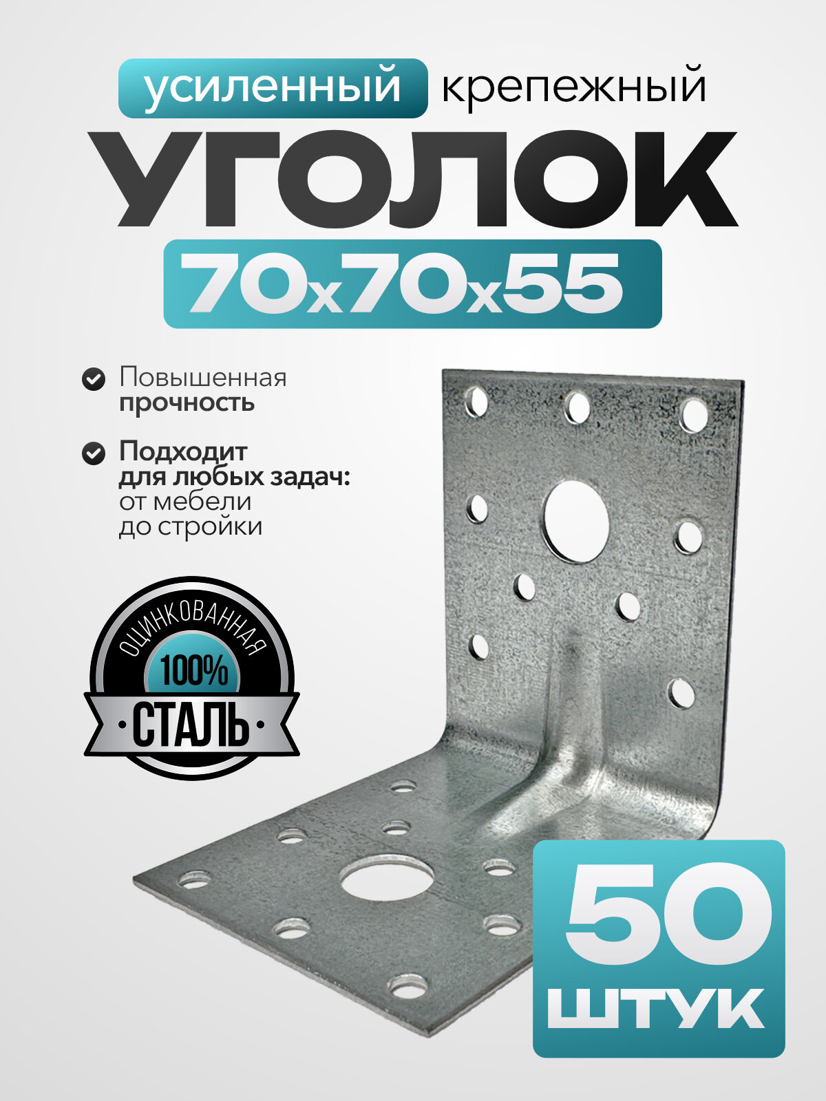 Купить Крепежный уголок усиленный, оцинкованная сталь 70х70х55 мм (50 шт.) с доставкой по всей России. Крепежный уголок усиленный, оцинкованная сталь 70х70х55 мм (50 шт.): сравнение цен, характеристики, фото, актуальное наличие и цены.