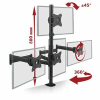Универсальное настольное крепление с горизонтальным размещением 4 мониторов, Независимая регулировка каждого экрана, Два варианта установки на столешницу: за край стола и на поверхность стола.