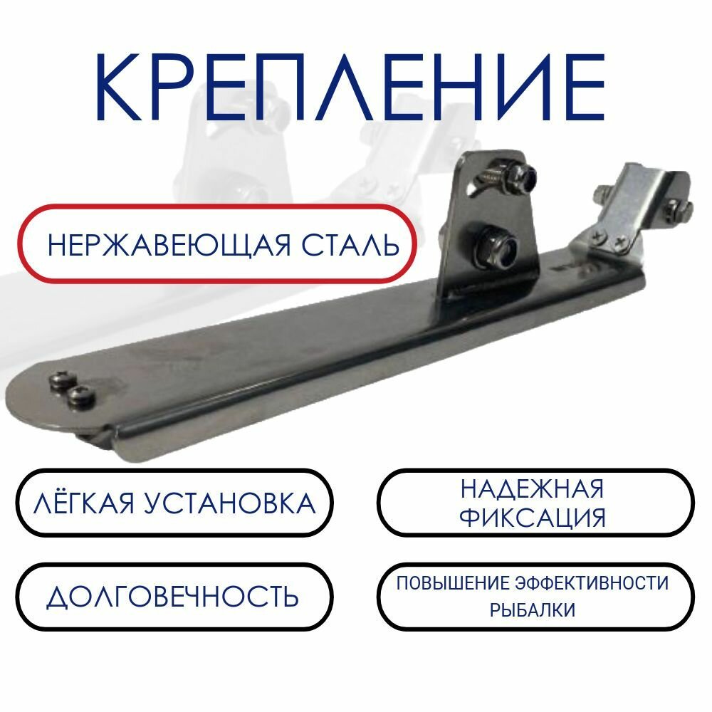 Изготавливаясь из качественных материалов, крепление гарантирует долговечность и устойчивость к влиянию внешней среды, что крайне важно при использовании на воде. Установка устройства не займет много времени благодаря простому и интуитивно понятному дизайну. Крепление подходит для различных типов лодок и может быть адаптировано под индивидуальные потребности каждого пользователя.