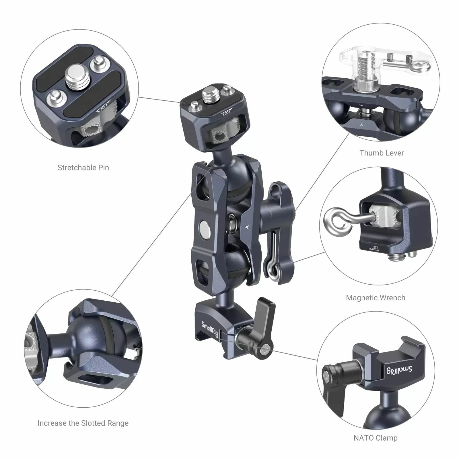 Крепление держатель SmallRig 3875 Magic Arm (1/4 и NATO) для аксессуаров - это компактное и легкое решение для установки аксессуаров на вашу камеру.