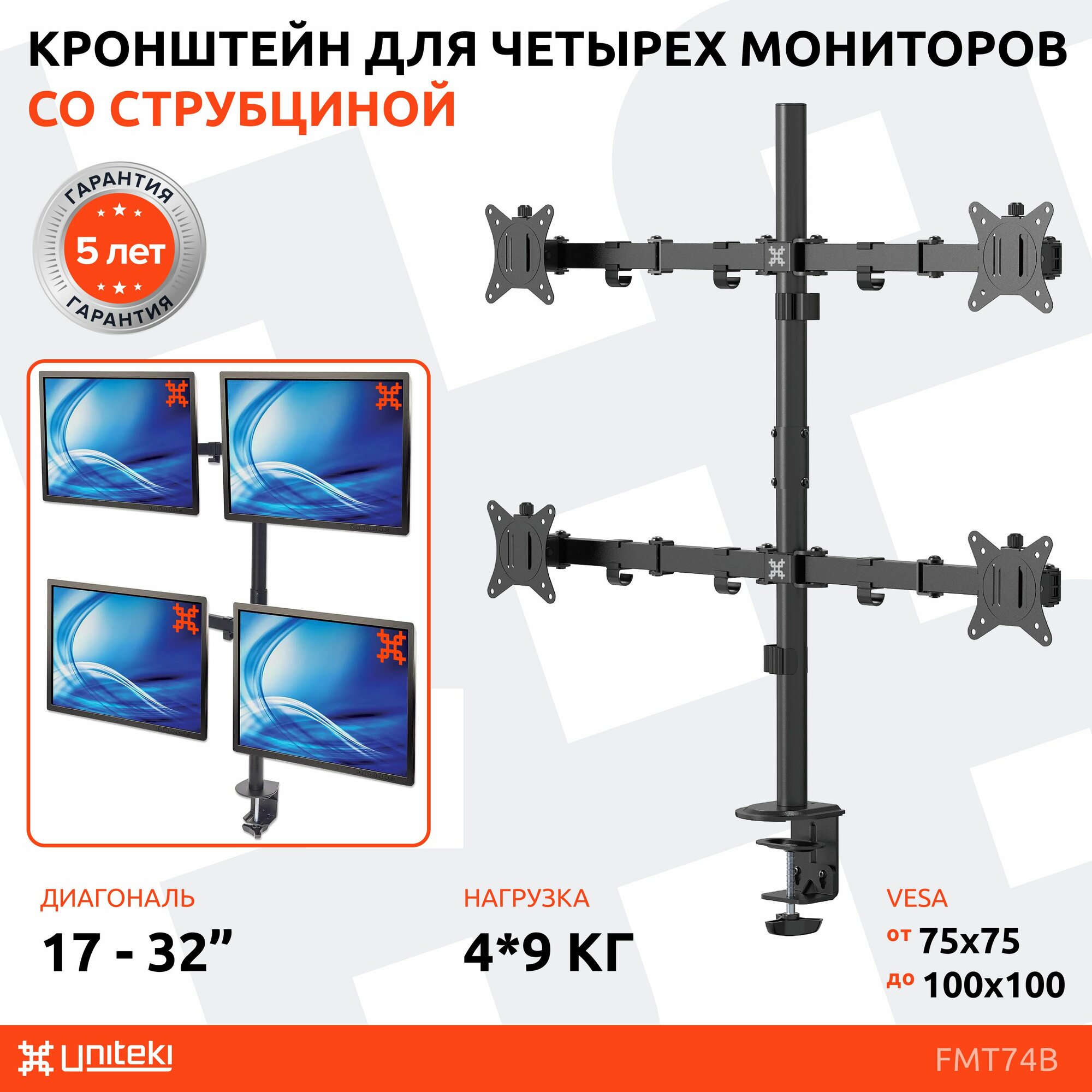 Купить Крепление для четырех мониторов на стол со струбциной диагональ 17-32 дюйма UNITEKI FMT74B черный, кронштейн настольный, поворотно наклонный, телескопический. с доставкой по всей России.