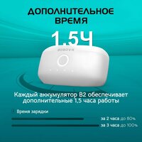 Вы можете докупить зарядную станцию в комплекте с дополнительным аккумулятором BoboVR BD2-1 (артикул 985905694 (смотри в серии)) и еще дольше наслаждаться виртуальным опытом, а также иметь комфортное устройство для подзарядки двух аккумуляторов.
