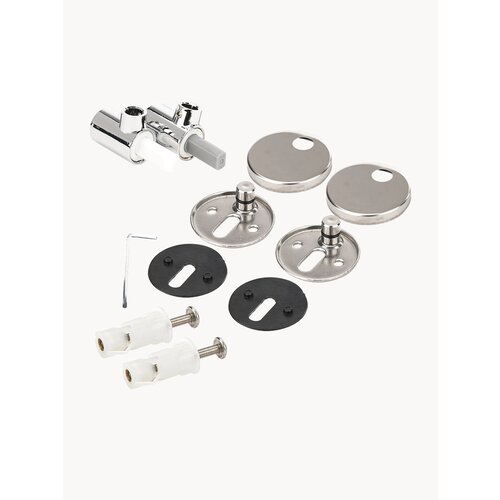 Крепление для сиденья унитаза KH-18SA выполнено из нержавеющей стали. Изделие предназначено для сидений с механизмом плавного опускания. В комплекте предусмотрены вставки из пластика, которые предохраняют поверхность унитаза от повреждений при монтаже. Для установки креплений требуется шестигранник, который входит в комплект.