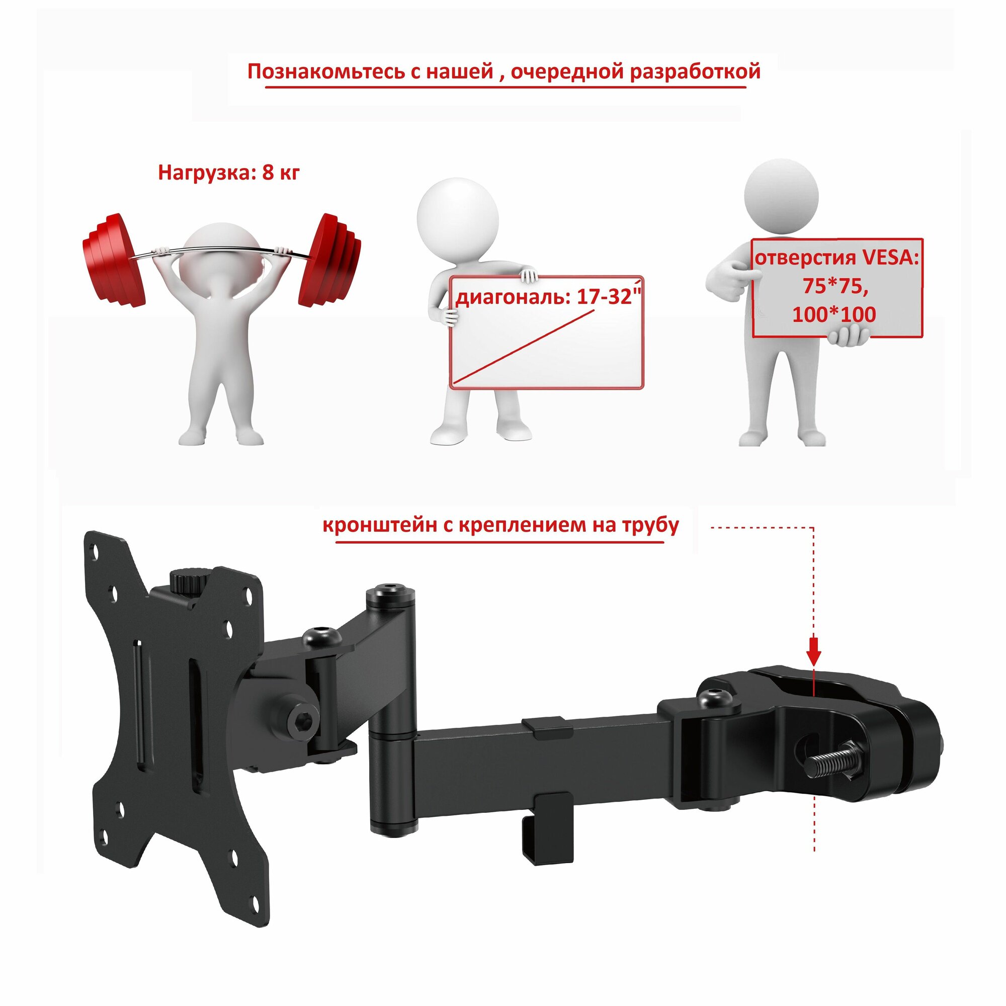 - Тип кронштейна: На трубу, наклонно поворотный быстросъемный для телевизора или монитора
