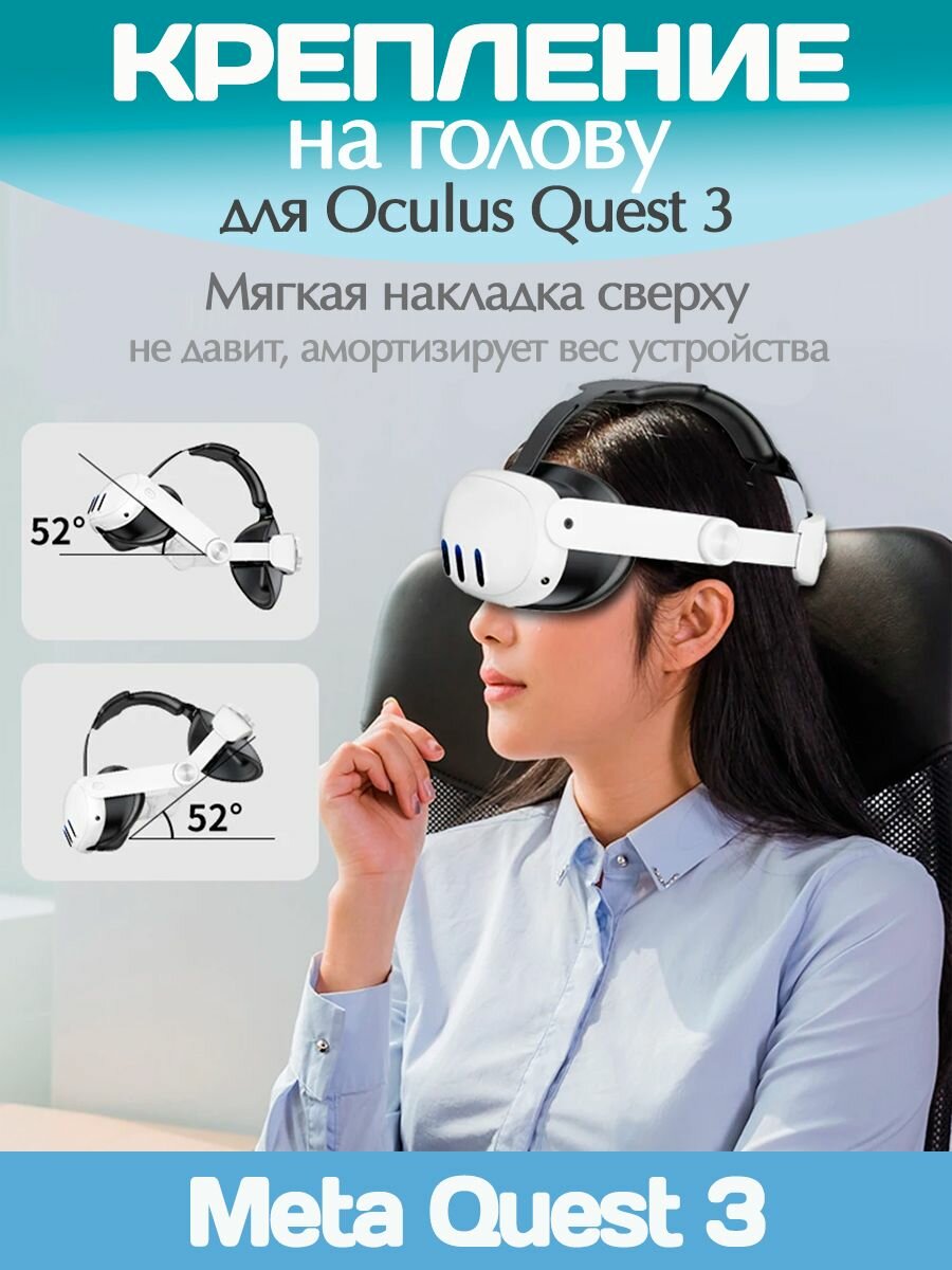 Крепление на голову для VR Oculus Quest 3 с регулировкой под любой размер головы и угол наклона.
