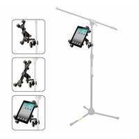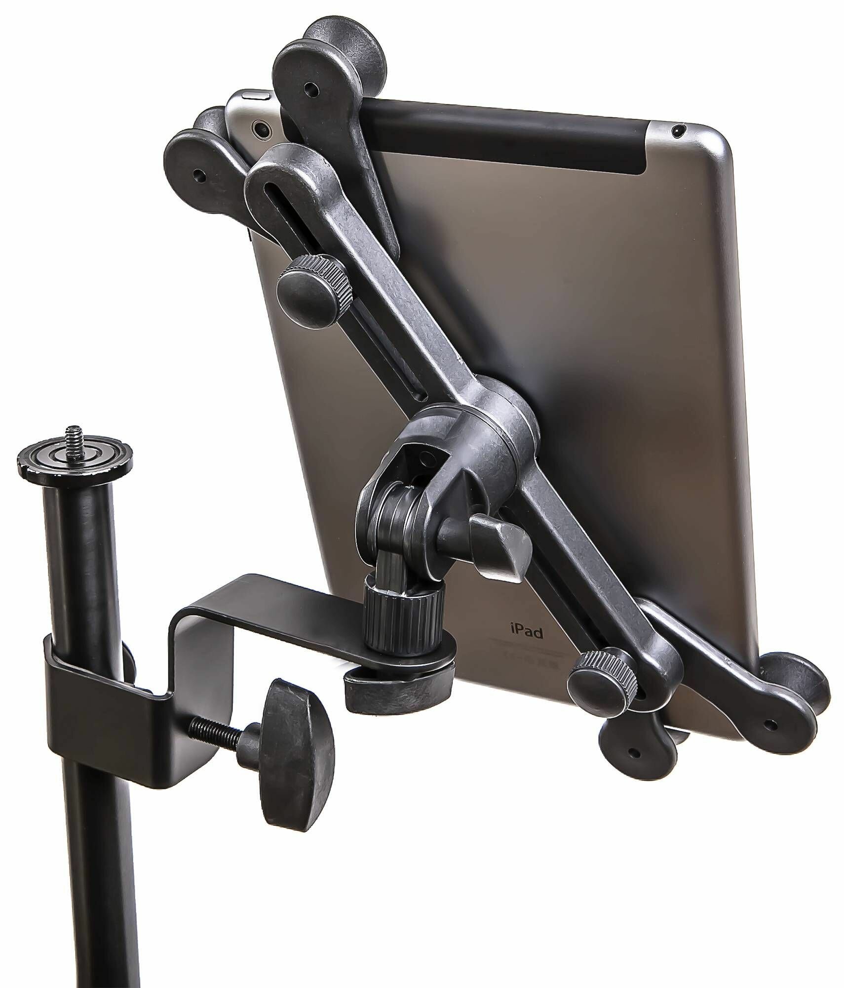 Описание Крепление планшета на микрофонную или другую стойку. Для планшетов с экраном диагональю 7-10". Боковой поворот держателя: 360 градусов. Наклон по высоте (вниз-вверх): 180 градусов. Материалы: держатель - пластик ABS, струбцина - сталь. Размеры упаковки: 240х115х100мм. Вес: 0,5кг.