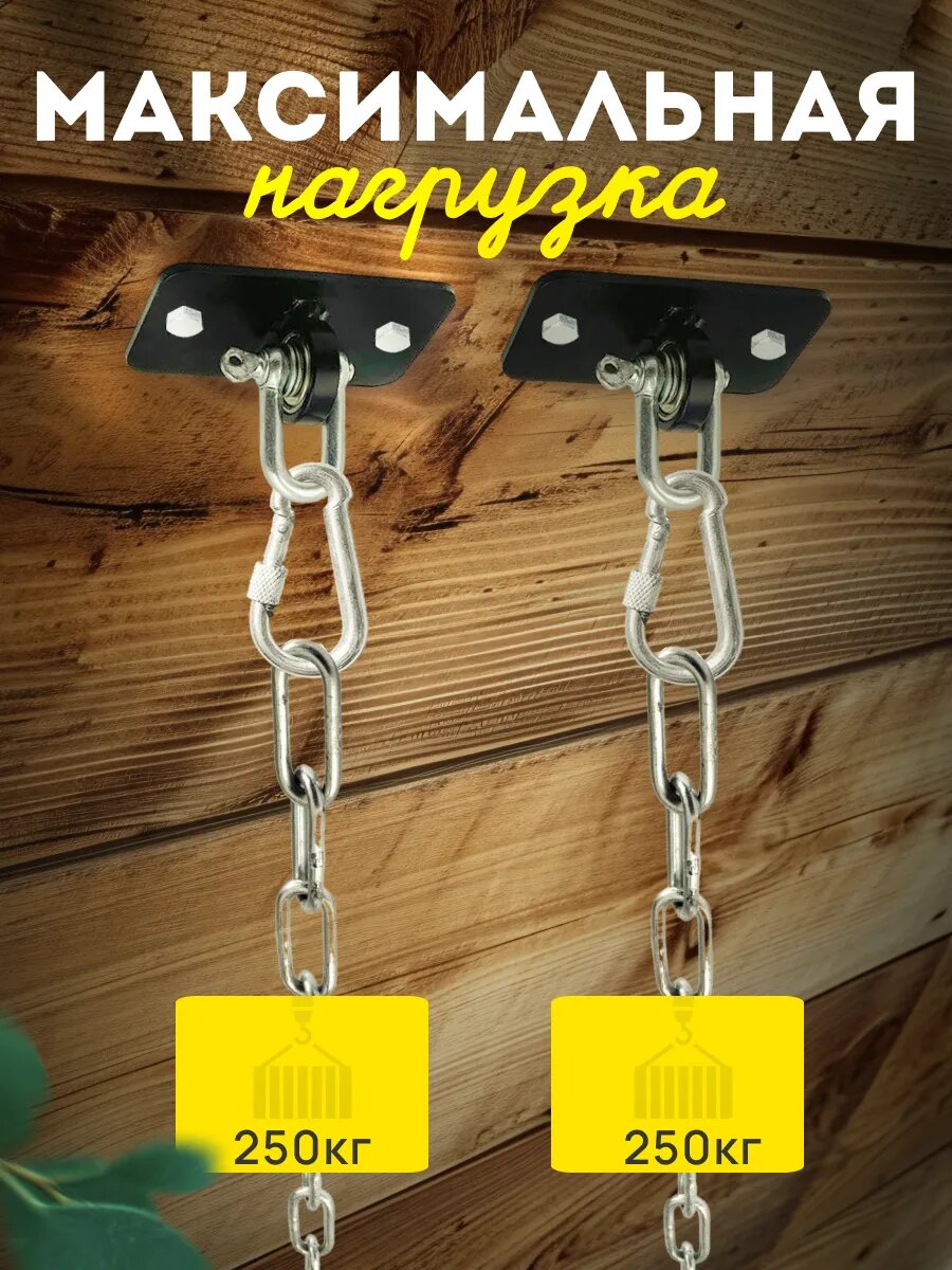 Наличие подшипников исключает трение и посторонние скрипы, а сами качели плавно раскачиваются без рывков и резких торможений. Мы используем подшипники отечественного производства! В аналогах, представленных на рынке, в основном представлены крепления на китайских подшипниках для удешевления стоимости конечного продукта. К сожалению, ресурс таких подвесов сильно снижен и в результате бонусом к такой покупке Вы получите не только дополнительные расходы, но и риск получить увечья. Благодаря петли подвеса, качели без труда подвешиваются на надежные карабины, исключая контакт с местом крепления подшипника. Используются для установки качелей на любой вид горизонтального покрытия дерево, металлическая форма навеса , бетонные перекрытия, любые виды игровых комплексов. Разрешённая нагрузка на один усиленный шарнир до 300 кг. Крепятся подвесы на анкерные болты или привариваются. Диаметр отверстий для крепления - 12 мм, расстояние между центрами отверстий - 100 мм. Размер металлической пластины (основания) - 60х120 мм, толщина - 4 мм. Вся установка не займет много времени.