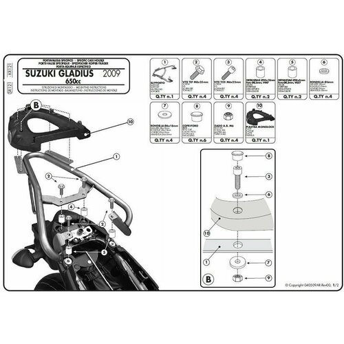 Крепление GIVI SR121 для установки центрального кофра GIVI типа MONOKEY на мотоциклы SUZUKI Gladius 650 2009-2016 годов. Площадка M5, на которую устанавливается кофр, входит в комплект крепления.