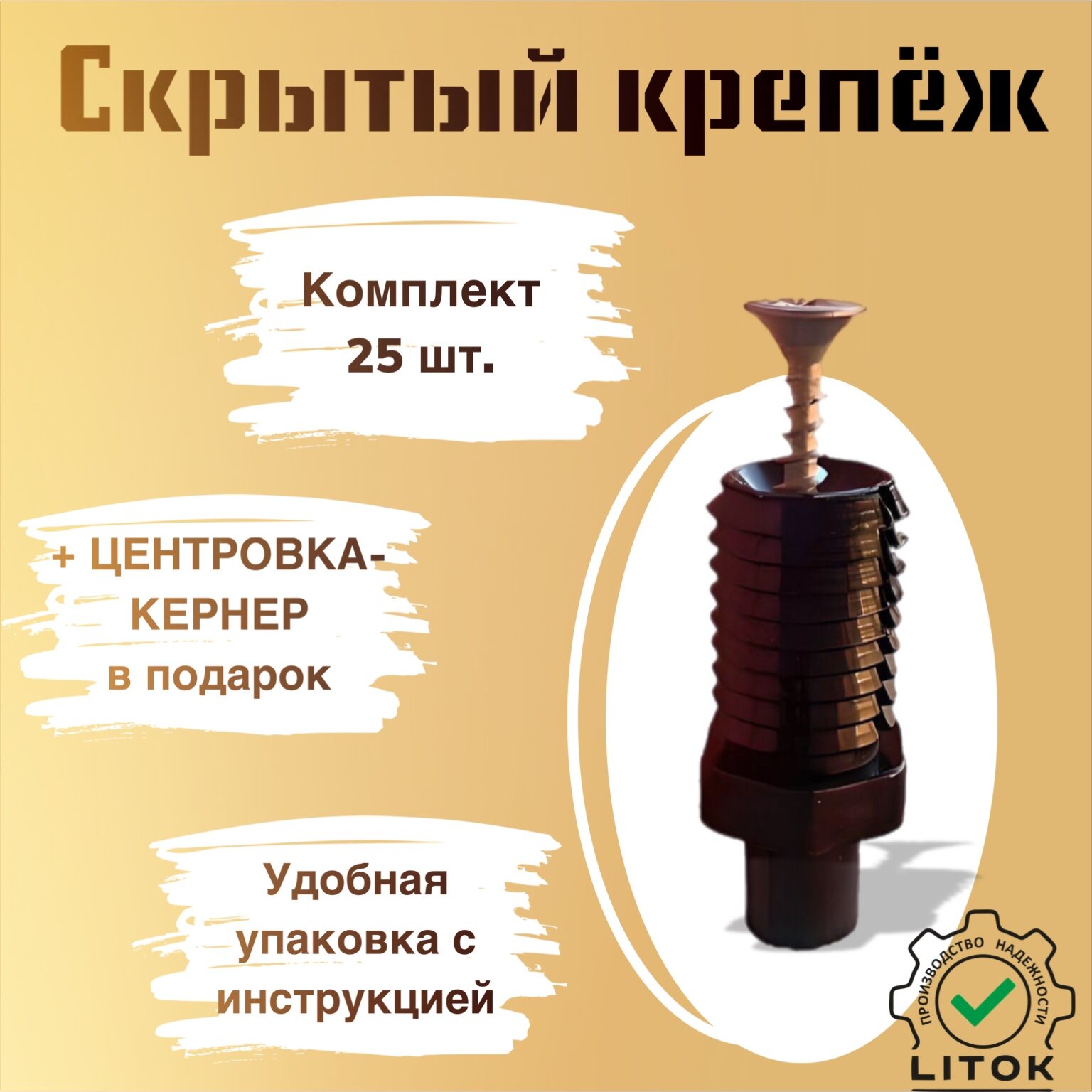 Крепежный комплект для деревянных ступеней прост в монтаже, незаметен и надежен. В упаковке 25 штук крепежа.