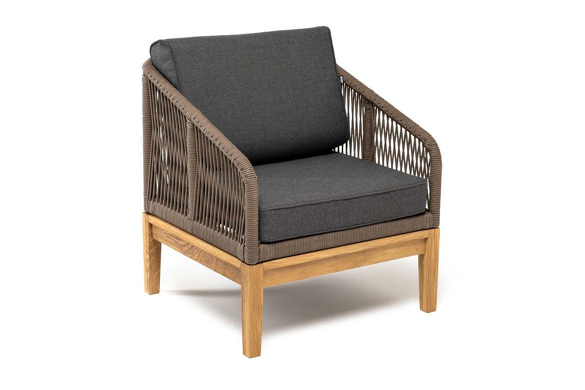 Кресло 4SIS «Канны» кресло плетеное из роупа, основание дуб, роуп коричневый круглый, ткань темно-серая 027 арт. KAN-A-T002 brown(D-gray027): сравнение цен, характеристики, фото, актуальное наличие и цены.