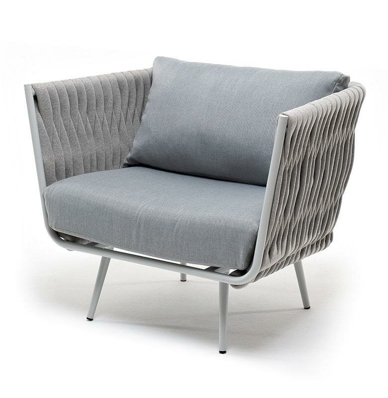 Кресло 4SIS «Монако» кресло плетеное из роупа, каркас алюминий светло-серый (RAL7035) муар, роуп светло-серый 40 мм, ткань светло-серая арт. MON-A-001 RAL7035 Mua H-grey(H-gray)