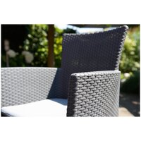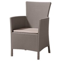 IOWA - это стильное и комфортное садовое кресло, предлагаемое в наборе с подушкой. Широкая гамма цветов и оригинальная, подобная ротанговой, фактура поверхности придется по вкусу даже самым требовательным пользователям. Произведено из стойкого к воздействию УФ-излучения и погодных условий высококачественного пластика. Прост в монтаже и чистке.