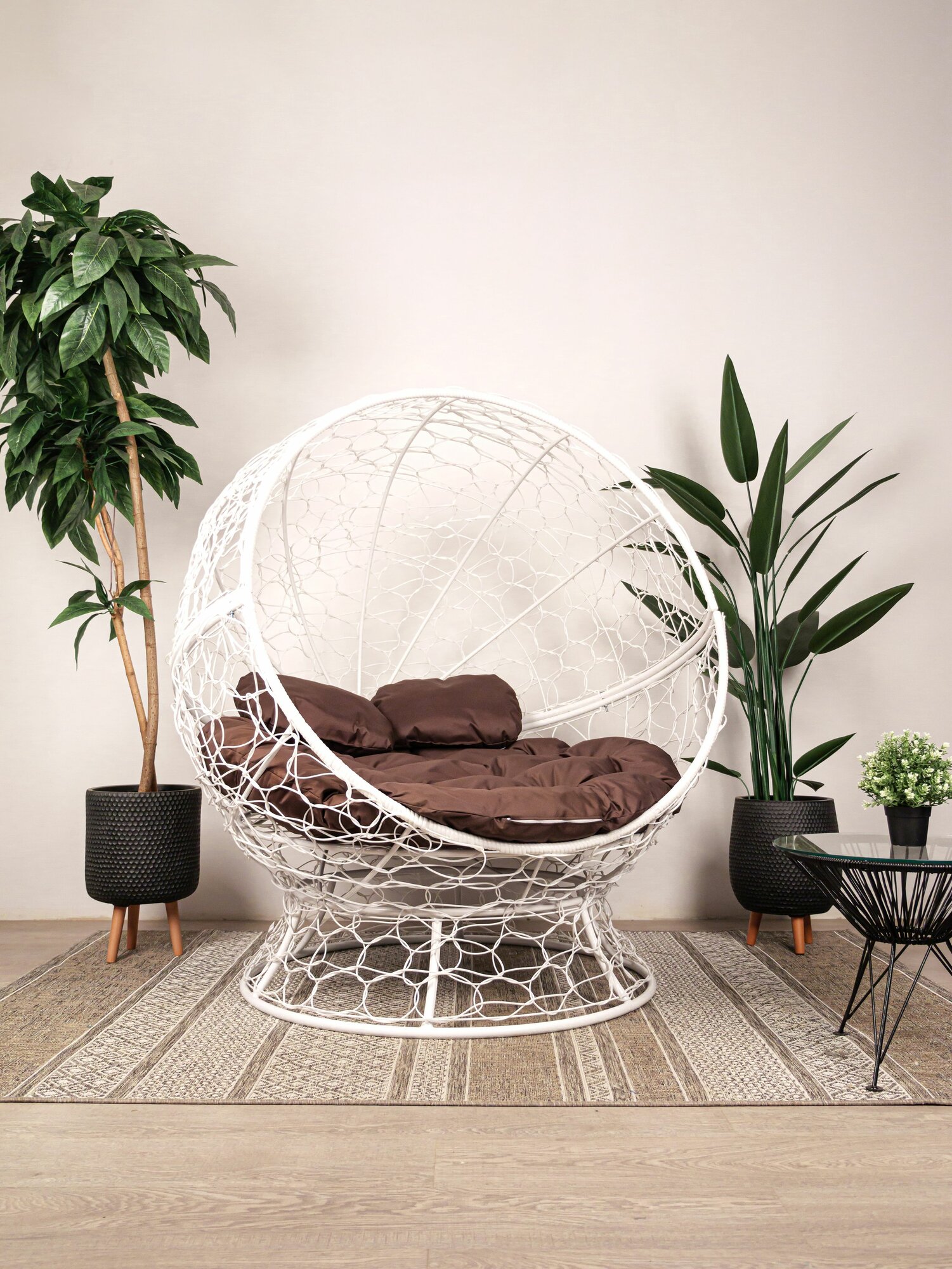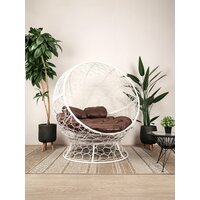 Кресло апельсин, с ротангом на подставке белое, коричневая подушка