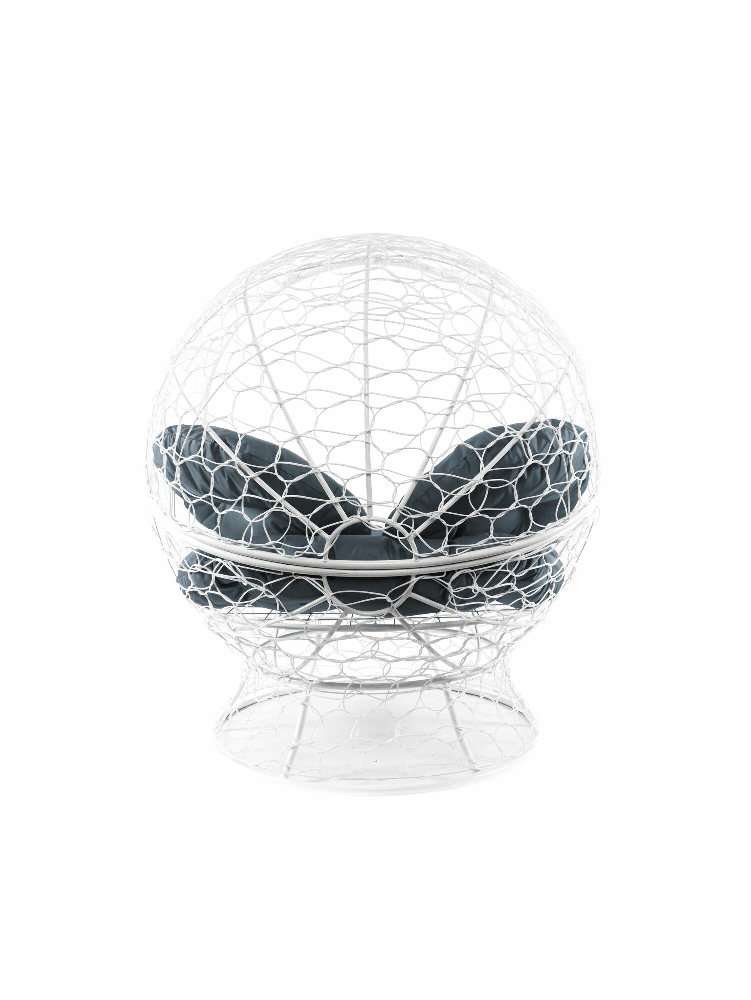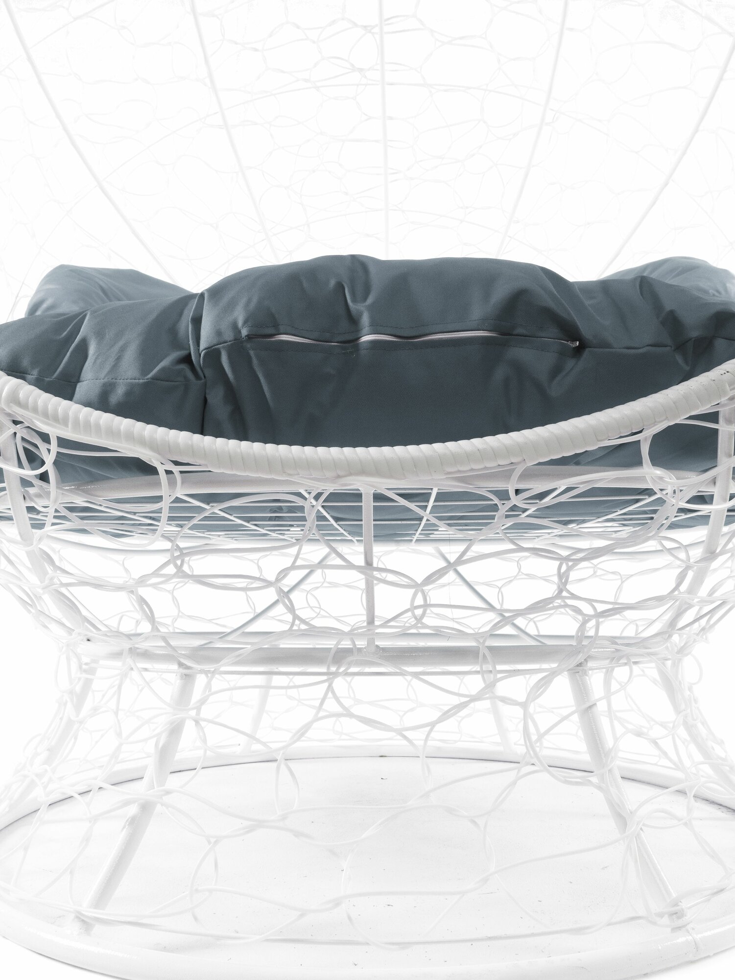 Кресло апельсин, с ротангом на подставке белое, серая подушка
