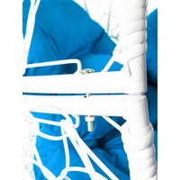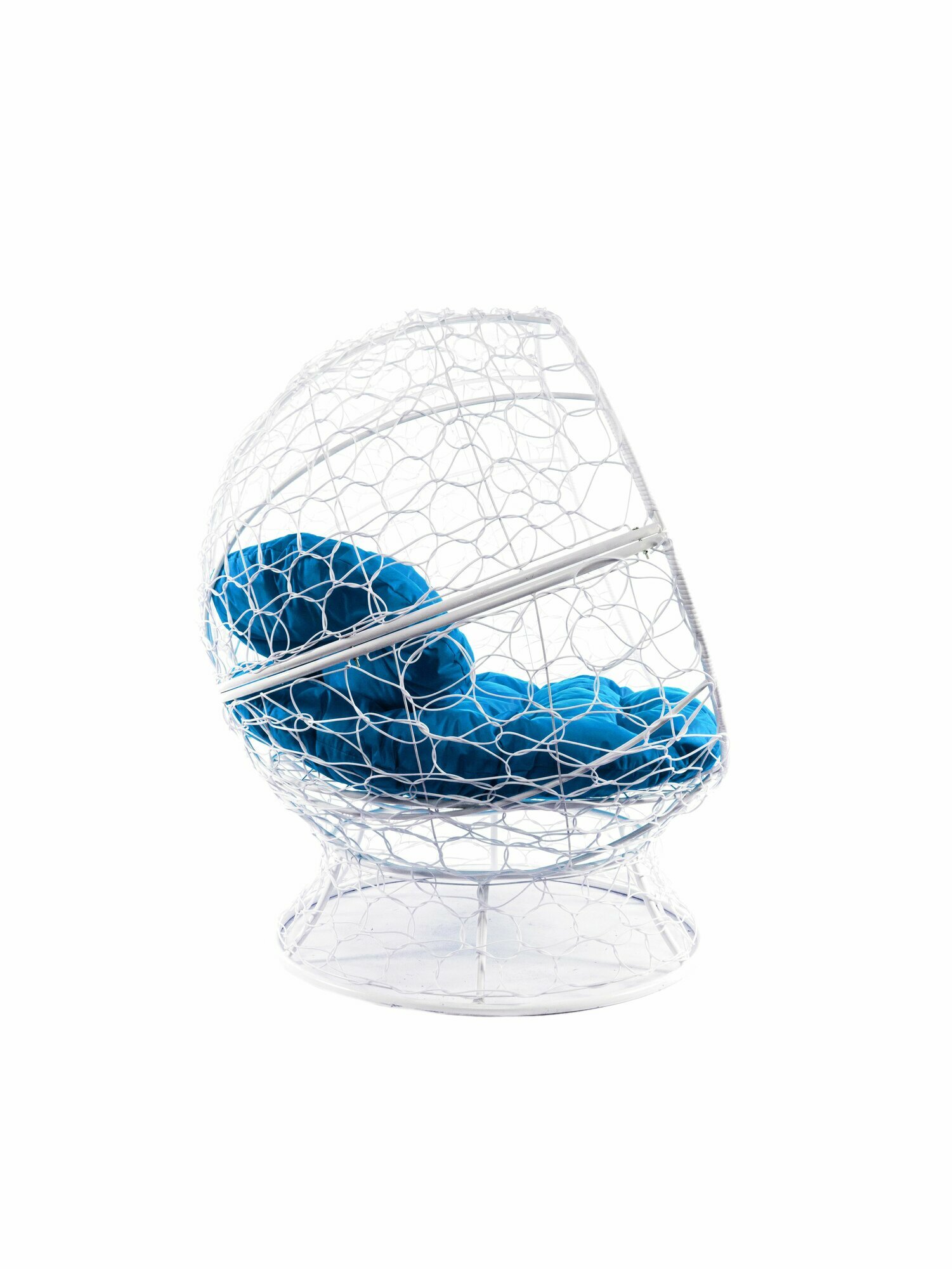 Кресло апельсин, с ротангом на подставке белое, синяя подушка