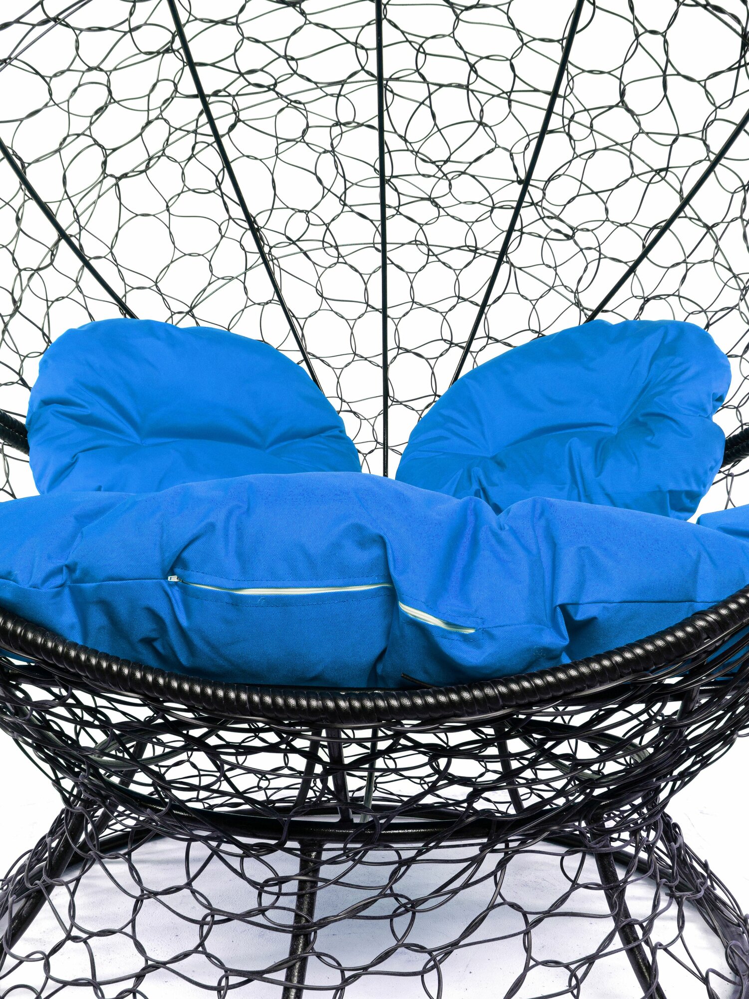 Кресло апельсин, с ротангом на подставке черное, синяя подушка