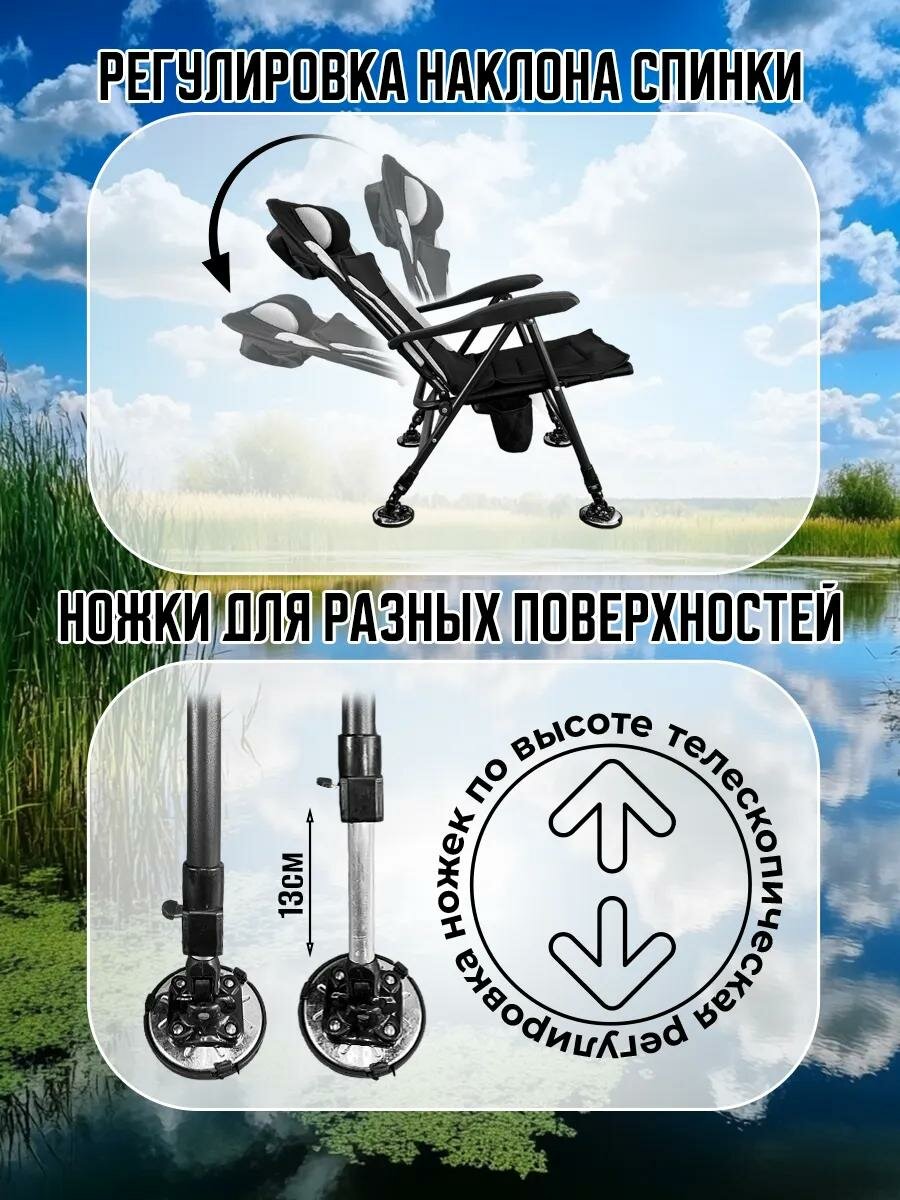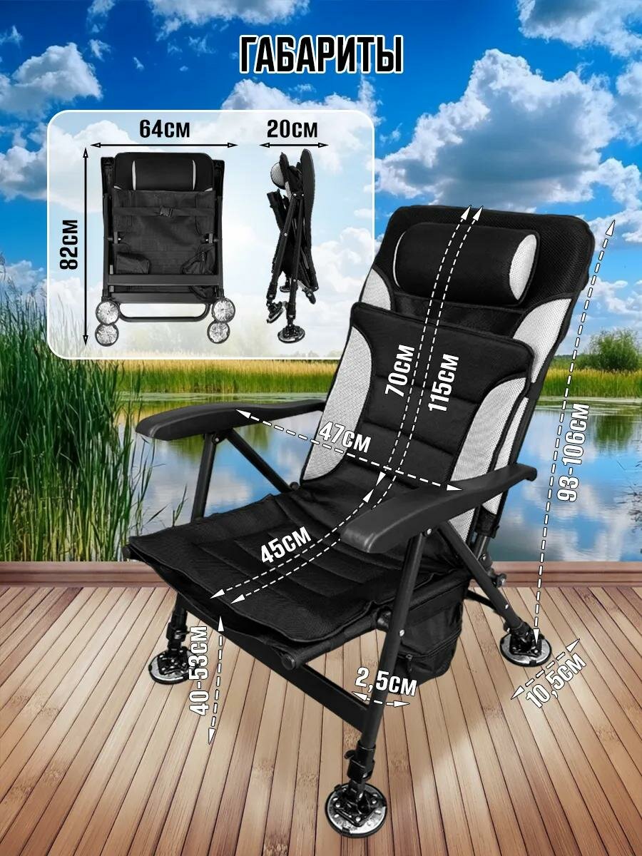 Особенности: Удобный дизайн, эргономичное сиденье и спинка обеспечивают максимальную поддержку и комфорт. Многоцелевое использование: Может использоваться как карповое кресло, шезлонг или раскладушка для комфортного сна.