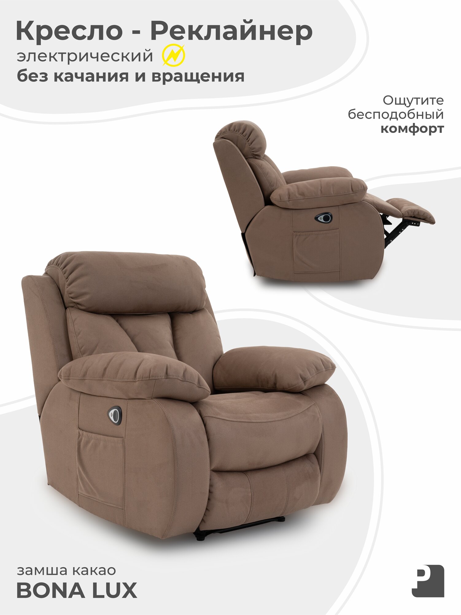 Кресло BONA LUX, реклайнер электрический без качания и вращения , замша какао, Мебельное бюро PEREVALOV: сравнение цен, характеристики, фото, актуальное наличие и цены.