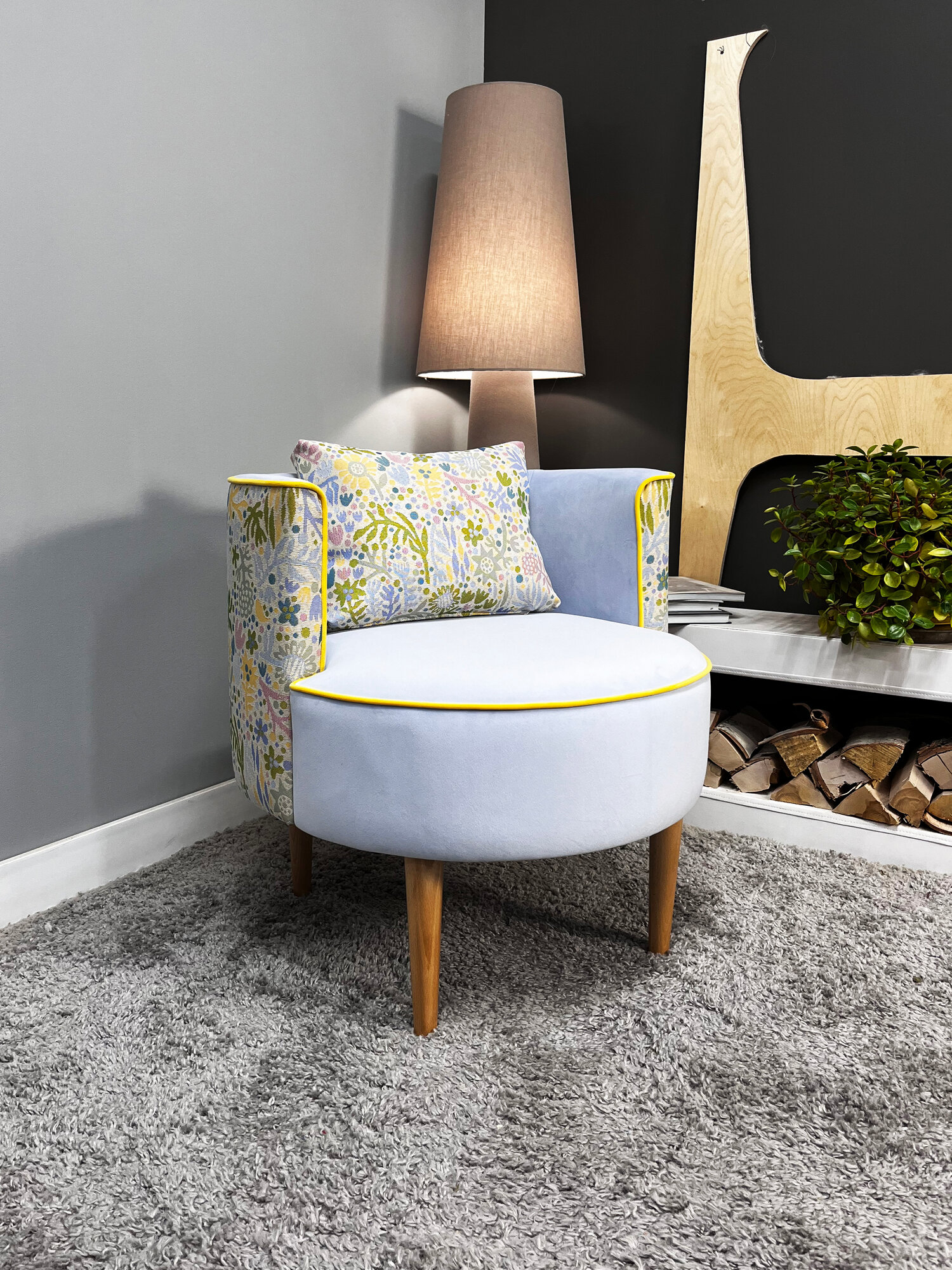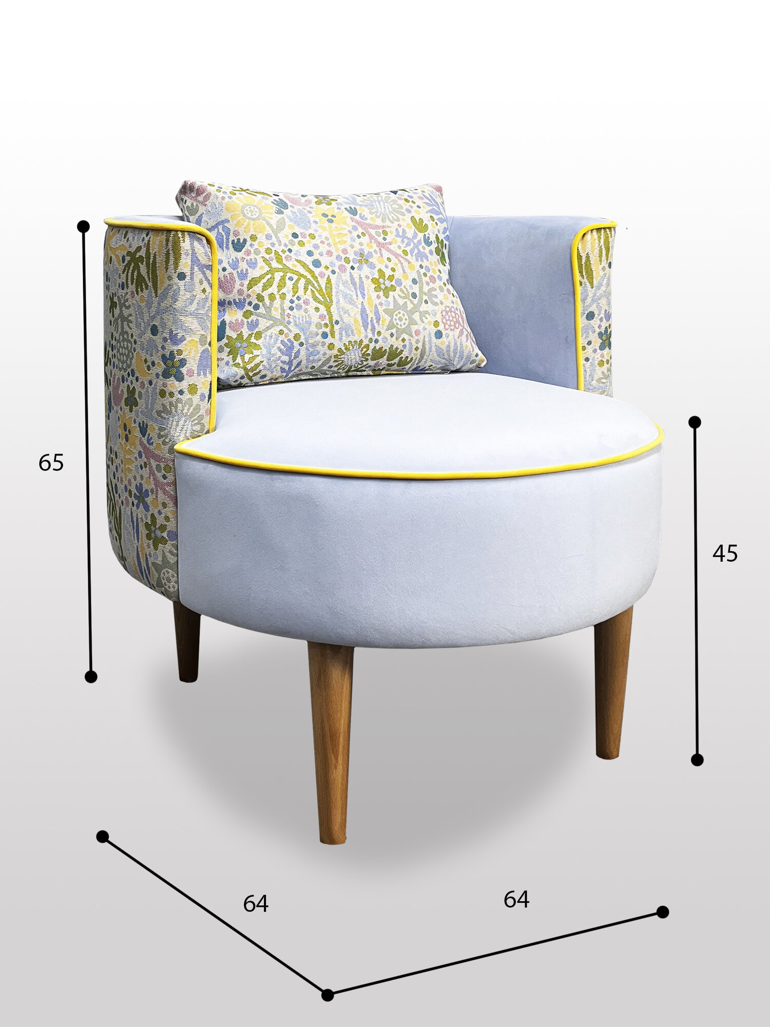 Это компактное кресло круглой формы станет ярким акцентом в вашем интерьере. Идеальное сочетание красочного гобелена, нежного однотонного велюра и декоративного канта. Модель Davinchi отлично подойдет для небольшой гостиной, холла, а так же для балкона или кухни. Каркас выполнен из березовой фанеры, что делает кресло прочным и экологичным, что позволяет использовать кресло даже детских комнатах. В комплекте к креслу идет декоративная подушка с молнией. Устойчивые конусные ножки из бука высотой 25см. Фетровые накладки защитят пол от царапин при перемещении.