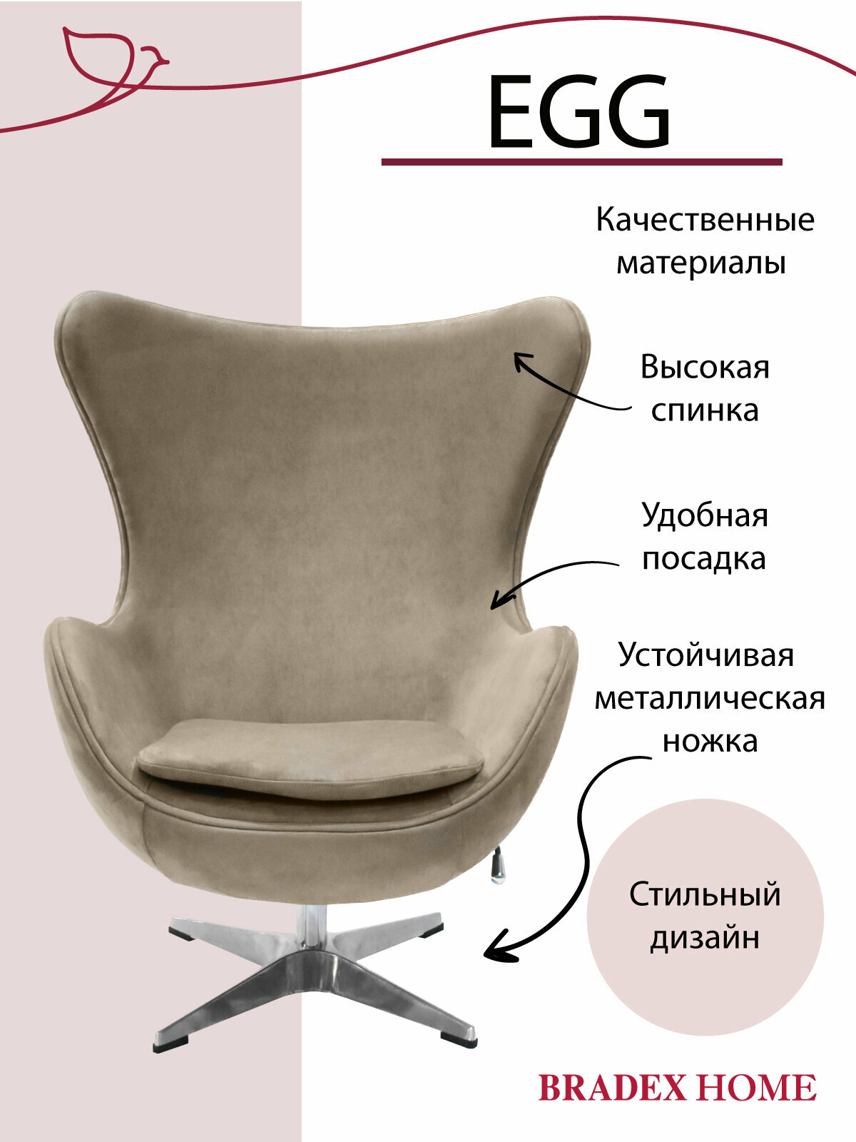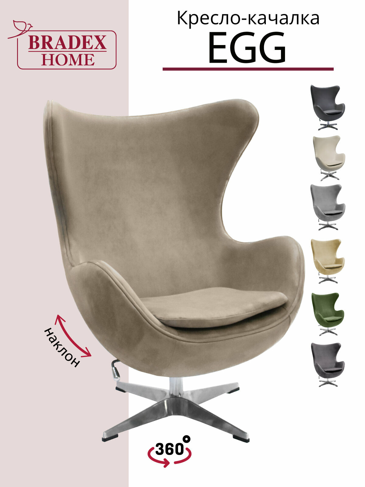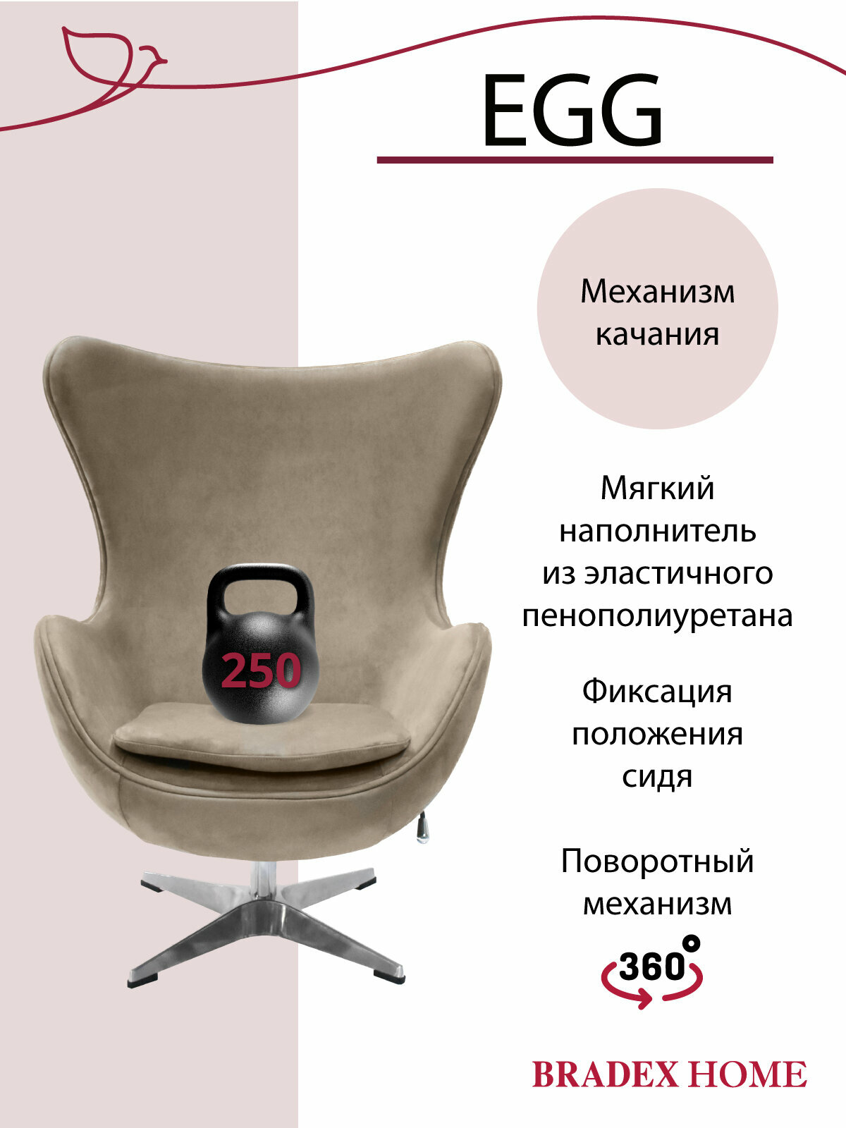 Кресло качалка EGG латте замша, взрослое, крутящееся мягкое круглое на ножке, интерьерное для дома в гостиную для отдыха: сравнение цен, характеристики, фото, актуальное наличие и цены.