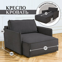 Кресло Brendoss 441 раскладное, кресло-кровать, материал износостойкий велюр, цвет графит