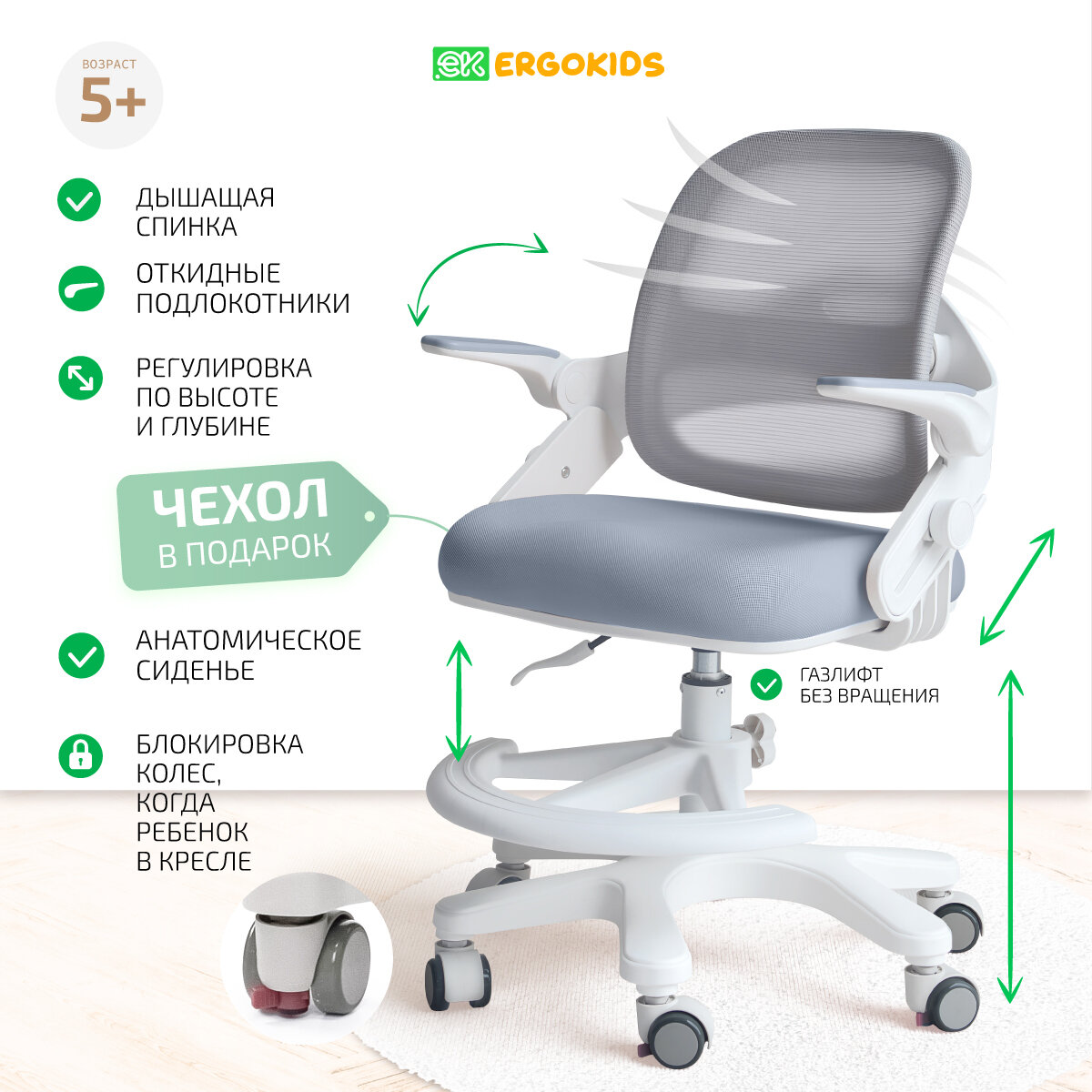 Детское кресло с подставкой Ergokids Dumbo Air отличный подарок для нового учебного года на 1 сентября, для школы и детского сада.